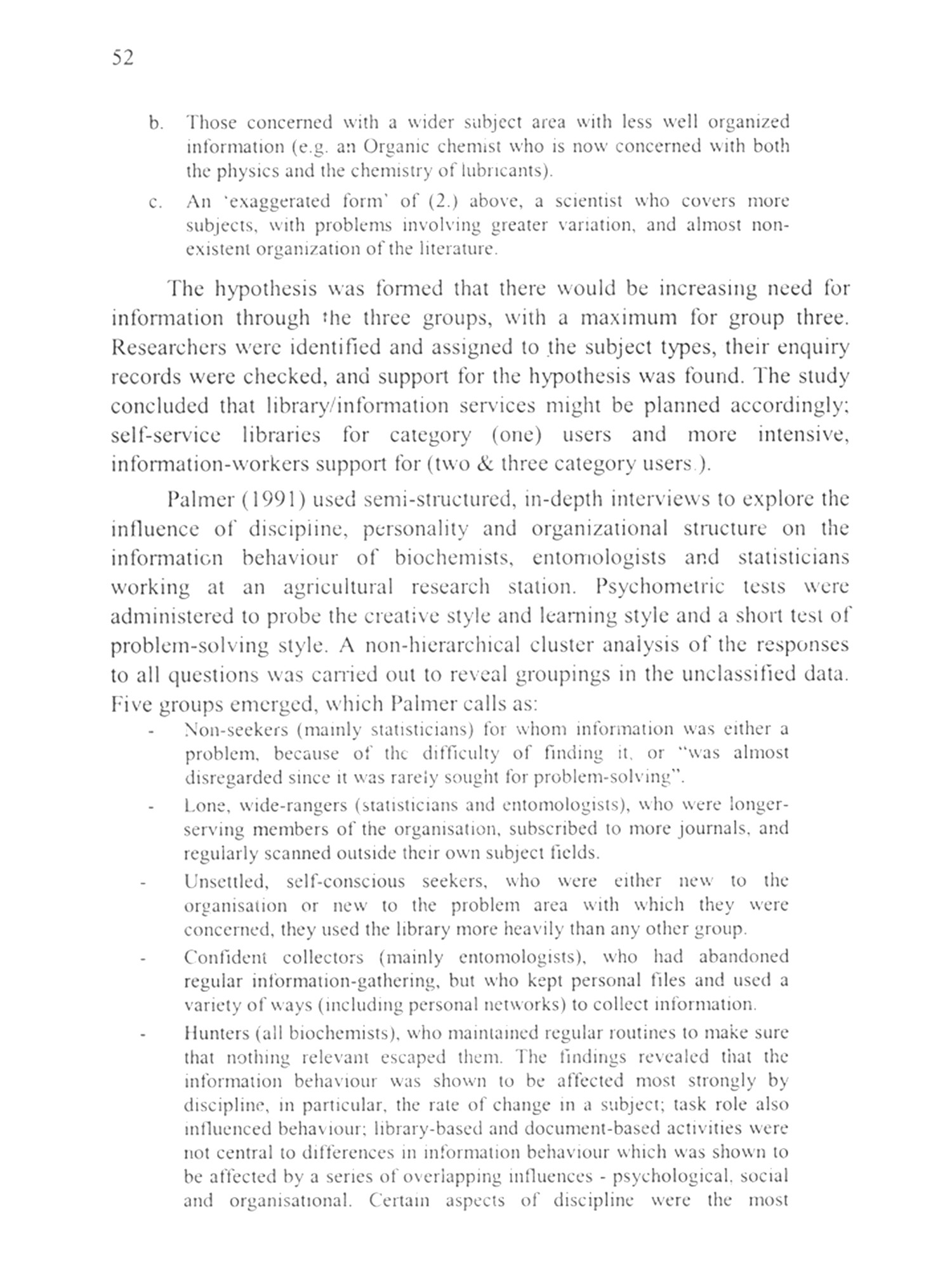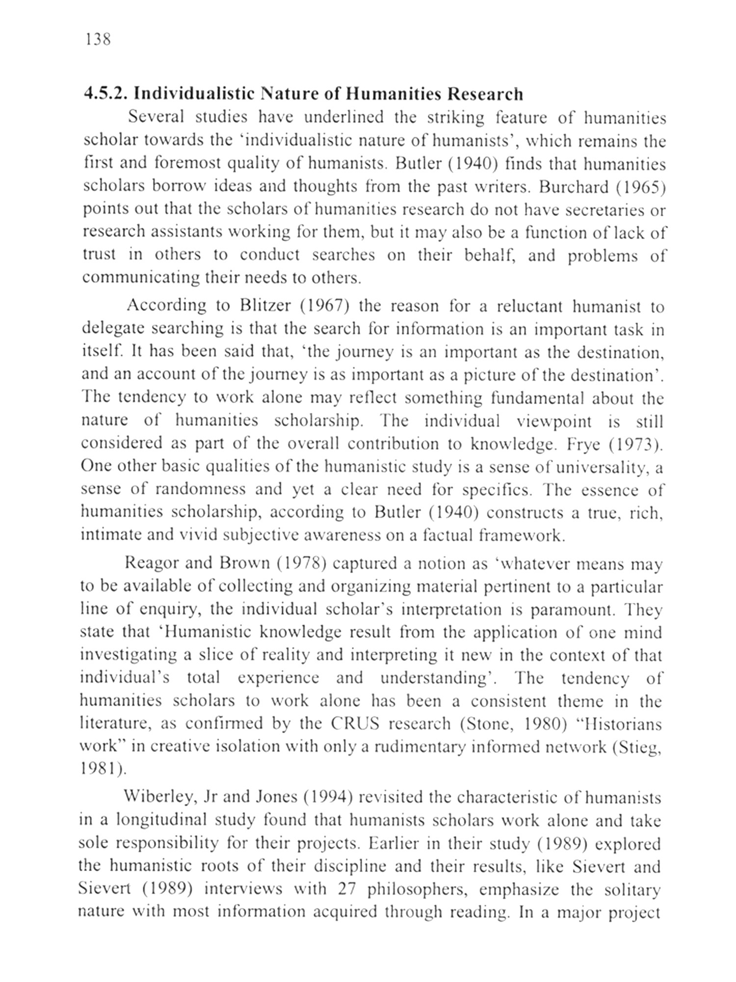 In the information science research, it is challenging to learn how to identify information needs, and to accommodate service patterns around those needs in a constantly changing environment. The early research in this area resulted in a somewhat distorted view of 'information seeking which made it mission-oriented and document-centered. The first period of scholarly communication was largely concerned with the user of scientific and technical information whereas in the second stage, sufficient attention was paid to 'Social Science'. However, only recently, serious attention has been devoted to 'Humanities' which has been the most isolated field. It is now gaining momentum in the field of user studies.