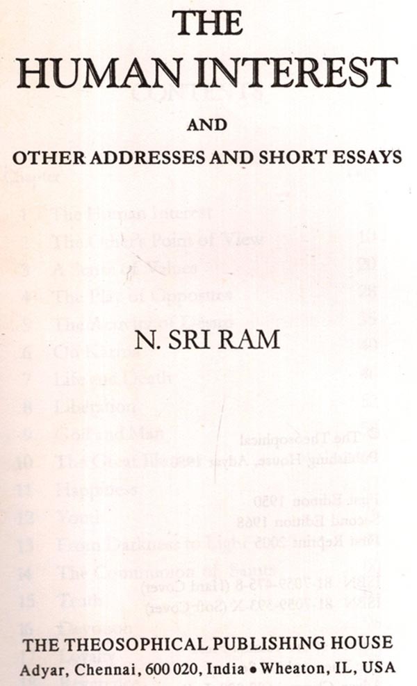 Publisher: The Theosophical Publishing House Adyar, Chennai