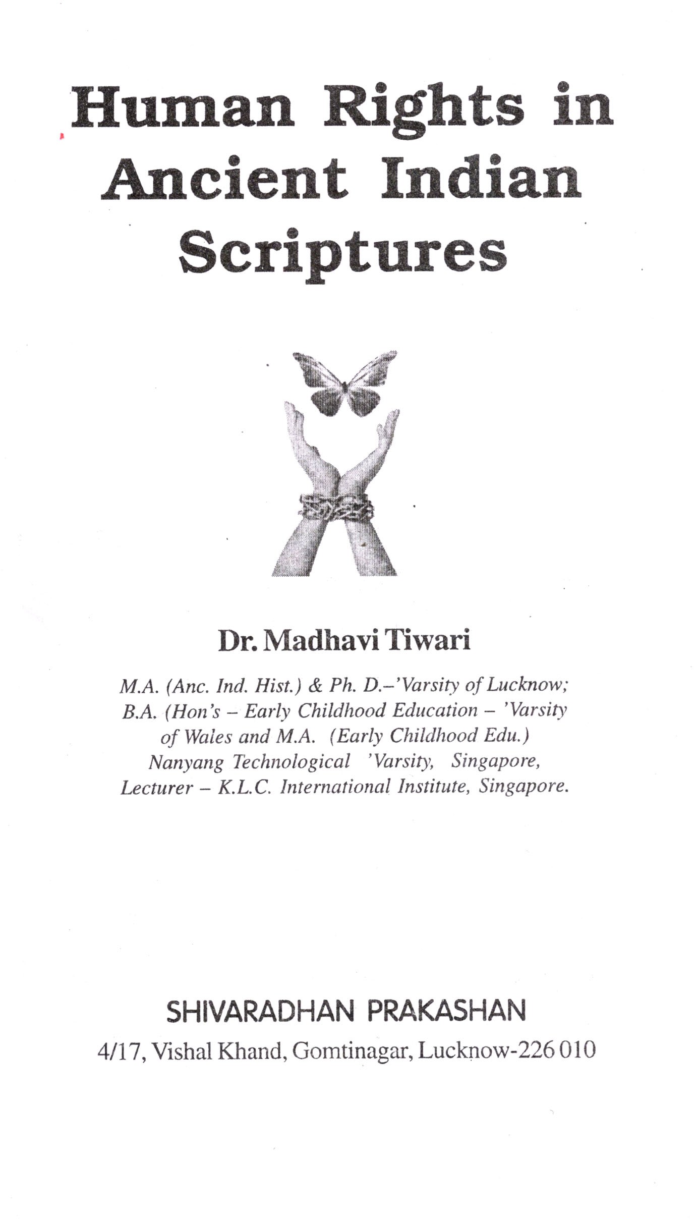The history of incredible ancient India has always been a subject closest to my heart. It is because of this that soon after doing my masters in Ancient Indian History, Culture and Archaeology, I approached my revered teacher Prof. Dr. Shiv Nandan Mishra, the then Head of the Department of Ancient Indian History, Culture & Archaeology, Lucknow University to favour me by suggesting a suitable subject for my onward study and research. Delighted at the very idea, Prof. Mishra very kindly asked me to mount a study on 'The contribution of smritis in definition of human rights'. Although the subject was quite challenging, yet as I familiarised myself with it and gradually grew along with it, it proved to be interesting, enlightening and quite informative. Obviously, the subject, per-se, entailed the task of going through the scriptures and works written in Sanskrit, Pali and Prakrit as these formed the original sources.