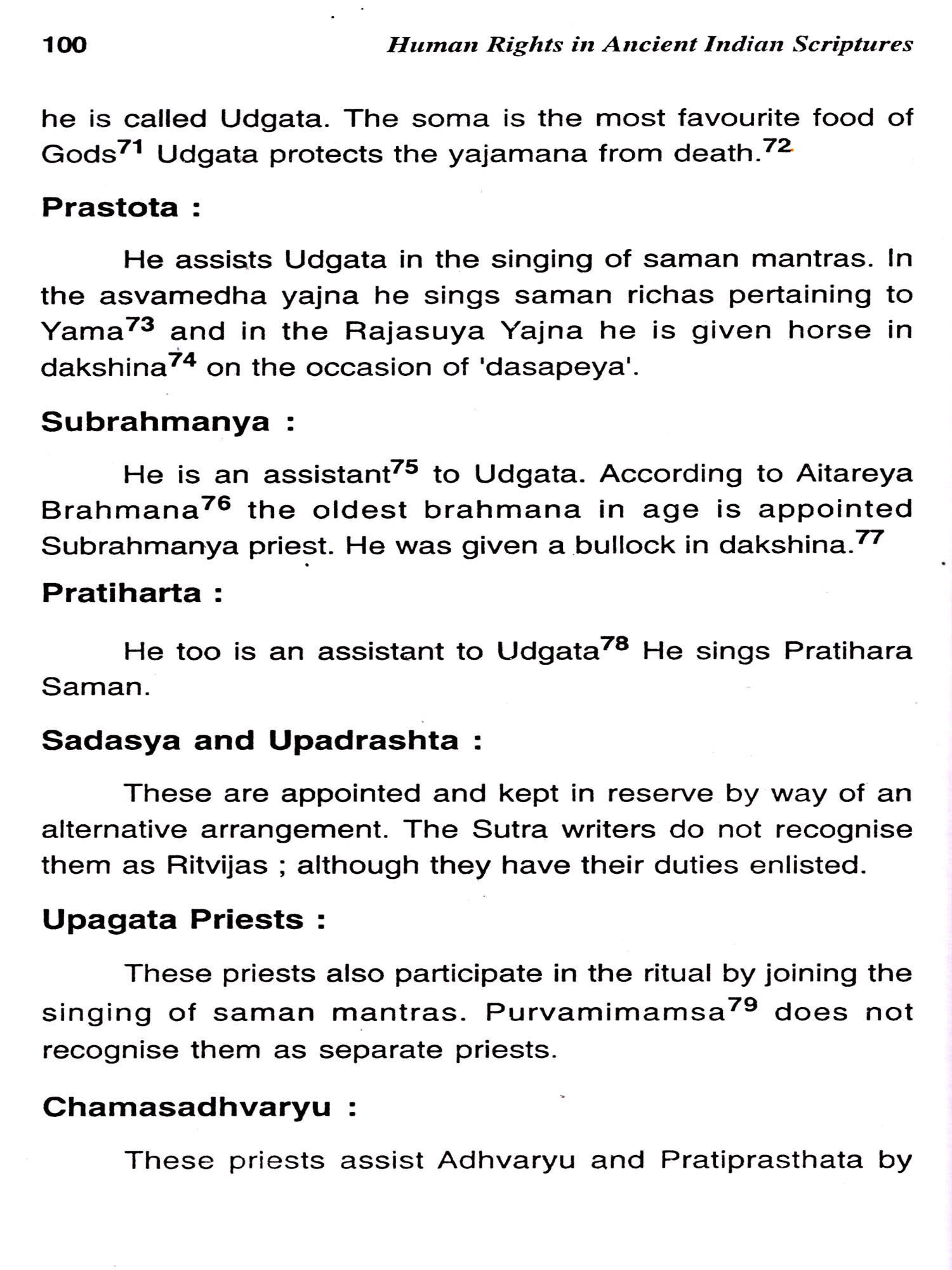 At the very outset, it may be pointed out that quite an enormous and illuminating research work has been done by a galaxy of scholars on various aspects of our ancient history. Despite this, there has always been a desideratum in as far as going through at length various untouched areas of human rights obtaining in our hoary past with their kinds, types, degrees and measures etc. etc. are concerned. The present attempt, in its own humble nature, aims at precisely meeting this need.