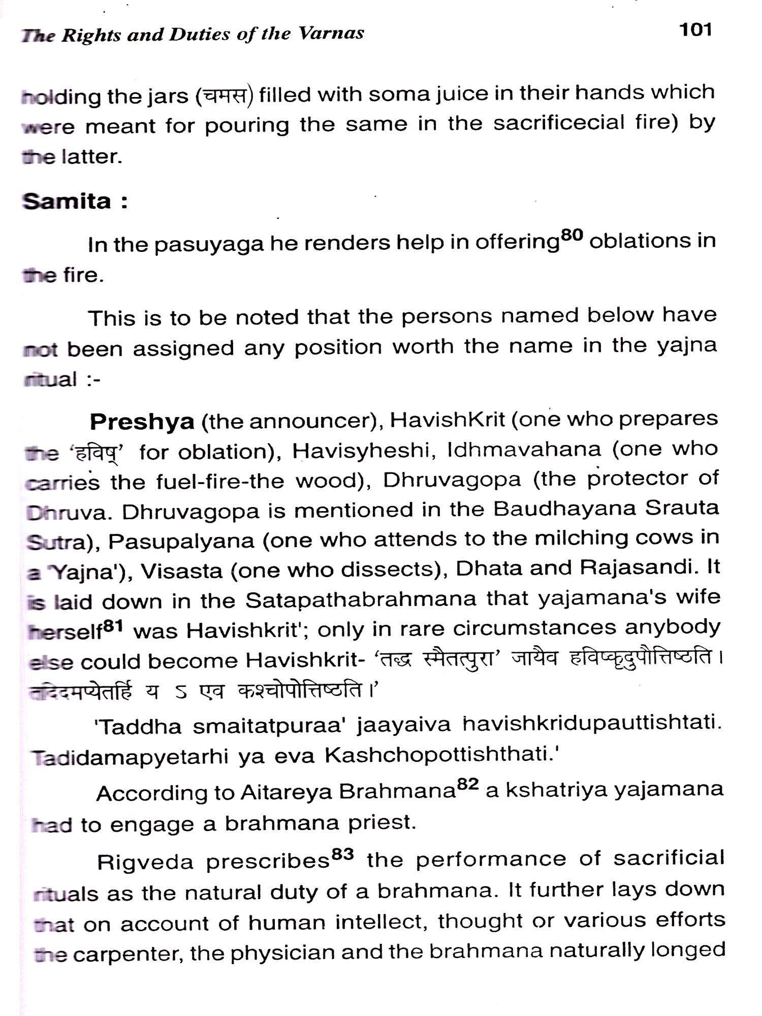 (1) The Vedic 'vaanmaya' (वाङमय) that, inter alia. includes the (spoken literature too) covers the major written literature. The veda, however, comprises both the 'Mantra' (मन्त्र) portion and the 'Brahmana' (ब्राह्मण) texts. The two constituents are aptly described by the traditional scholars as 'Mantrabraahmanayorveda naamadheyam-'मन्त्रब्राह्मणयोर्वेदनामधेयम्'. The nomenclature 'veda', therefore, connotes the 'Mantras' and the 'Braahmanas', taken together. Reference has been made to various 'samhitaas' (compilation of 'Mantra' hymns) and the 'Braahmanas', (the applicatory statements meant to explain the application/ utilization of the 'Mantras' in the performance of the 'yajna' and other rituals). The sutra' literature, the upanishads, the 'smritis' and the the 'puranas' etc. too constitute the bulk of the vedic literature' that seeks to regulate the social, religious, economic and, political life of our ancient Indian society. The entire vedic 'vaanmaya' is religious in nature, intent and spirit and holds the vedas to be eternal and not authored by the human intellect. It is 'therefore' called apaurusheya- 'अपौरुषेय:' Their injunctions and commandments are taken to be the ultimate and abiding authority for Hindus: This vast vedic literature is traditionally, venerated and called as aastika' (आस्तिक) literature- that which believes in the exclusive and paramount testimony of the vedas.