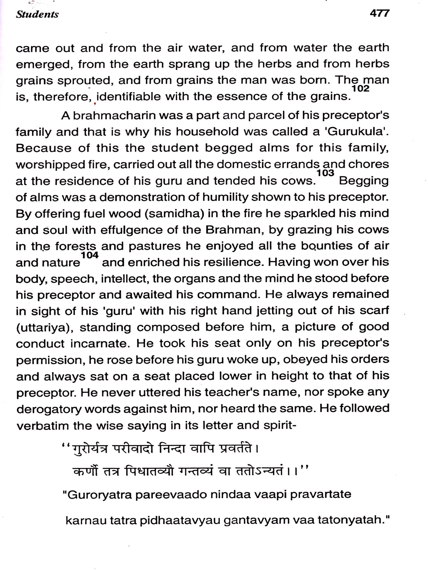 My study of Sanskrit at the 'A' level that is the Intermediate class rendered my task somewhat easy. Prof. Mishra, my guide and supervisor, proved a true friend, philosopher and guide throughout my tenure.
