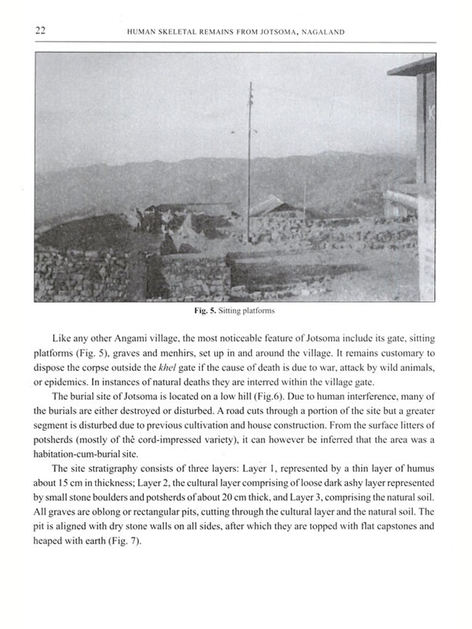 The present work is oriented along such lines, providing vital clues on the human remains form Jotsoma, a small hamlet from the district of Kohima, Nagaland, bringing to light information on the mortuary treatment and the general morphometric and palaeopathological conditions experienced by the population that once occupied the site. The main aim of the excavating the site habitation-cum-burial site of Jotsoma was to understand its temporal framework so as to view the mortuary treatment in the light of their respective cultural context. The observations presented in this monograph are not intended to interpret the social characteristics of the mortuary complex or furnish a straight-forward proposition on the nature of the society in existence in this regard, which obviously is beyond the scope of the monograph. Instead, this work largely encompasses aspects on the preservation conditions of the skeletons, cranial and post-cranial descriptions of each individual, dental pathology and sex determination. Nonetheless, in the present state of knowledge, such kind of research being the first attempt in the Northeastern part of India, it is hoped that this small piece of work would further bring forth similar research and encouraging strides in the future endeavours of fellow archaeologists and anthropologists of this part of the region of India.