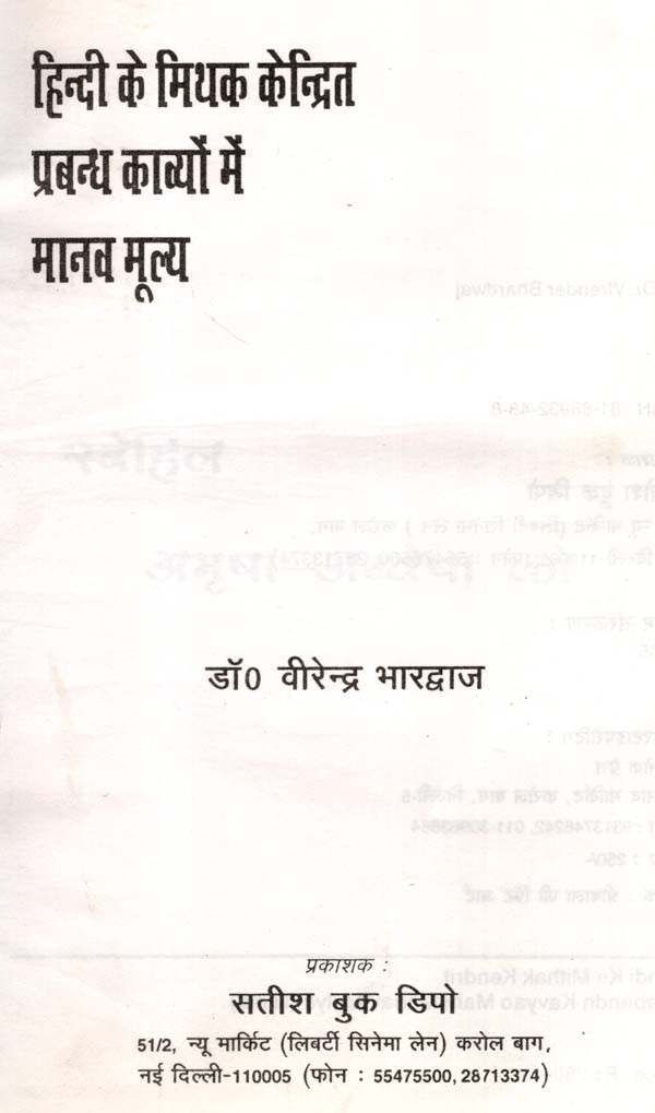 हिन्दी के मिथक केन्द्रित प्रबन्ध काव्यों में मानव मूल्य: Human Values in Myth-Centered Epic Poems of Hindi
