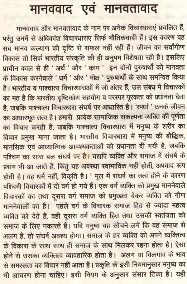 मानववाद और राजव्यवस्था- सुशासन व प्रशासन की एकात्म अवधारणा: Humanism and Polity- Integrated Concept of Good Governance and Administration