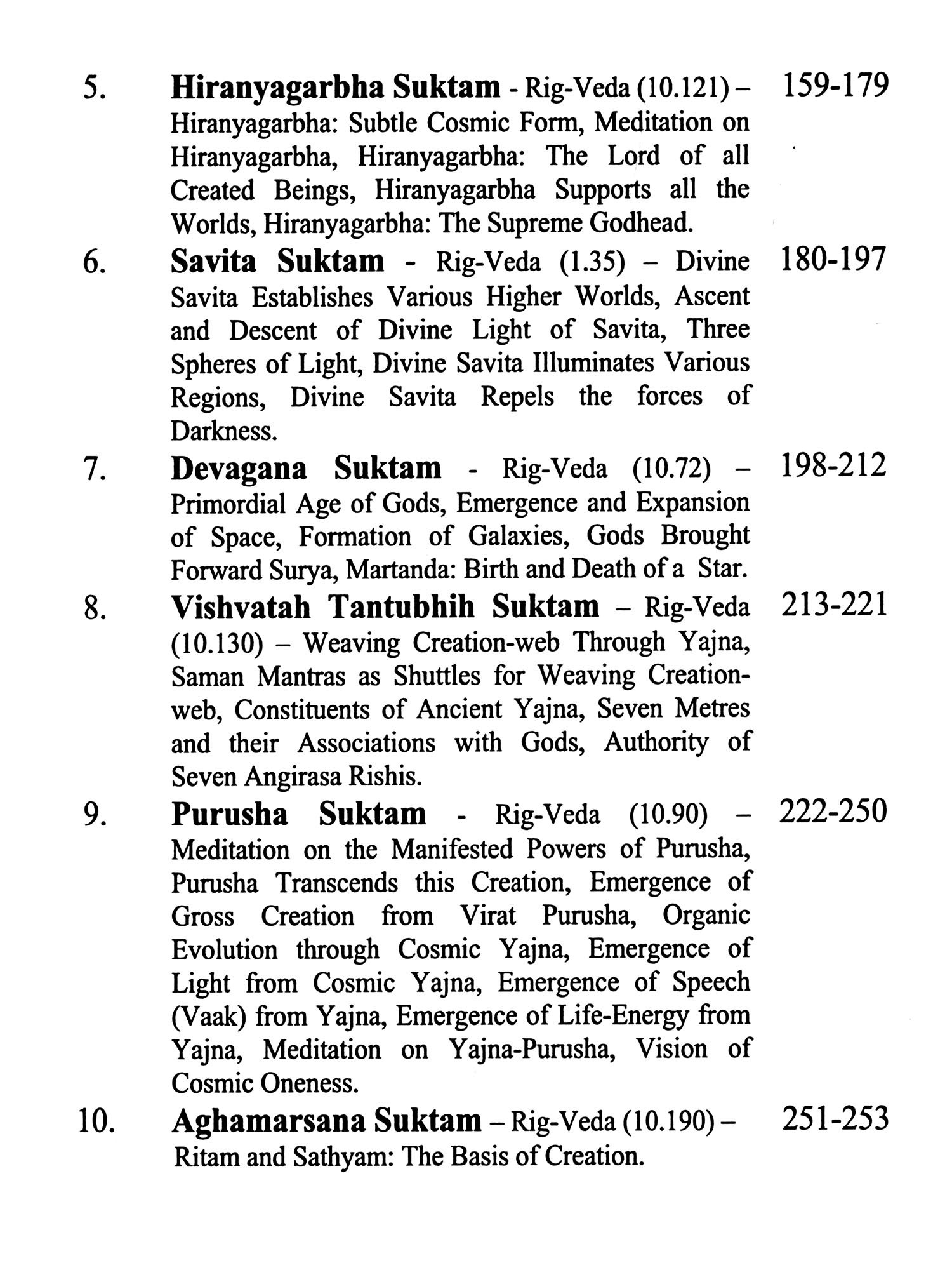 This book presents the Sanskrit text, English translation, and commentary on the few selected Suktas of the Rig-Veda. An attempt has been made to present the Vision of the Seer in these Suktas. A few sketches have also been provided for a clear understanding of the topic. The readers will find that the knowledge revealed in these Suktas is very profound.