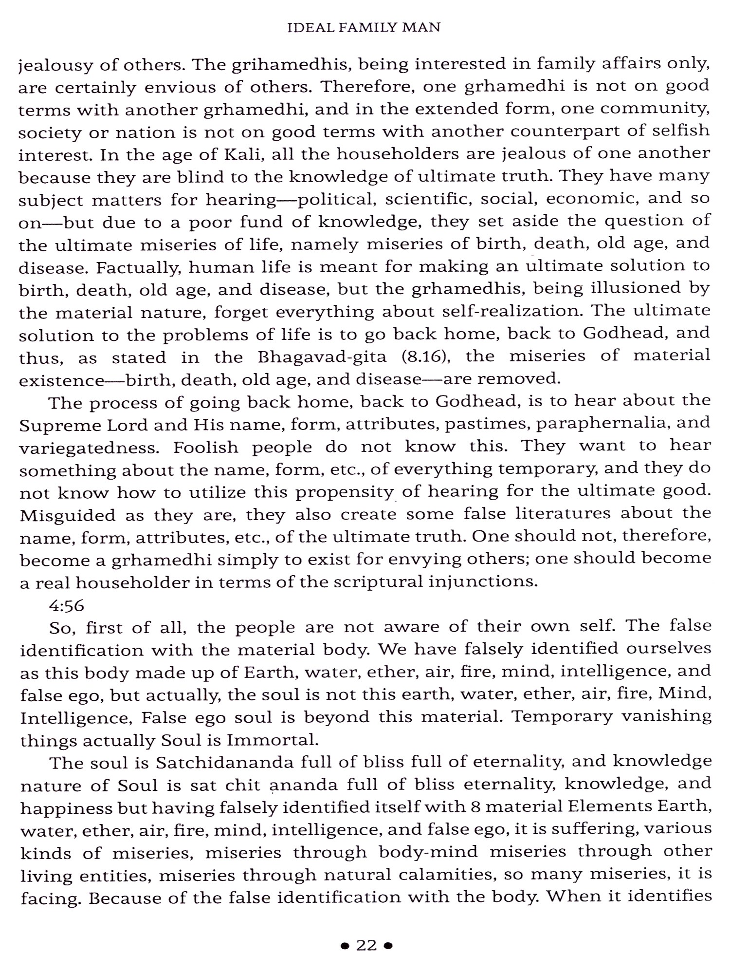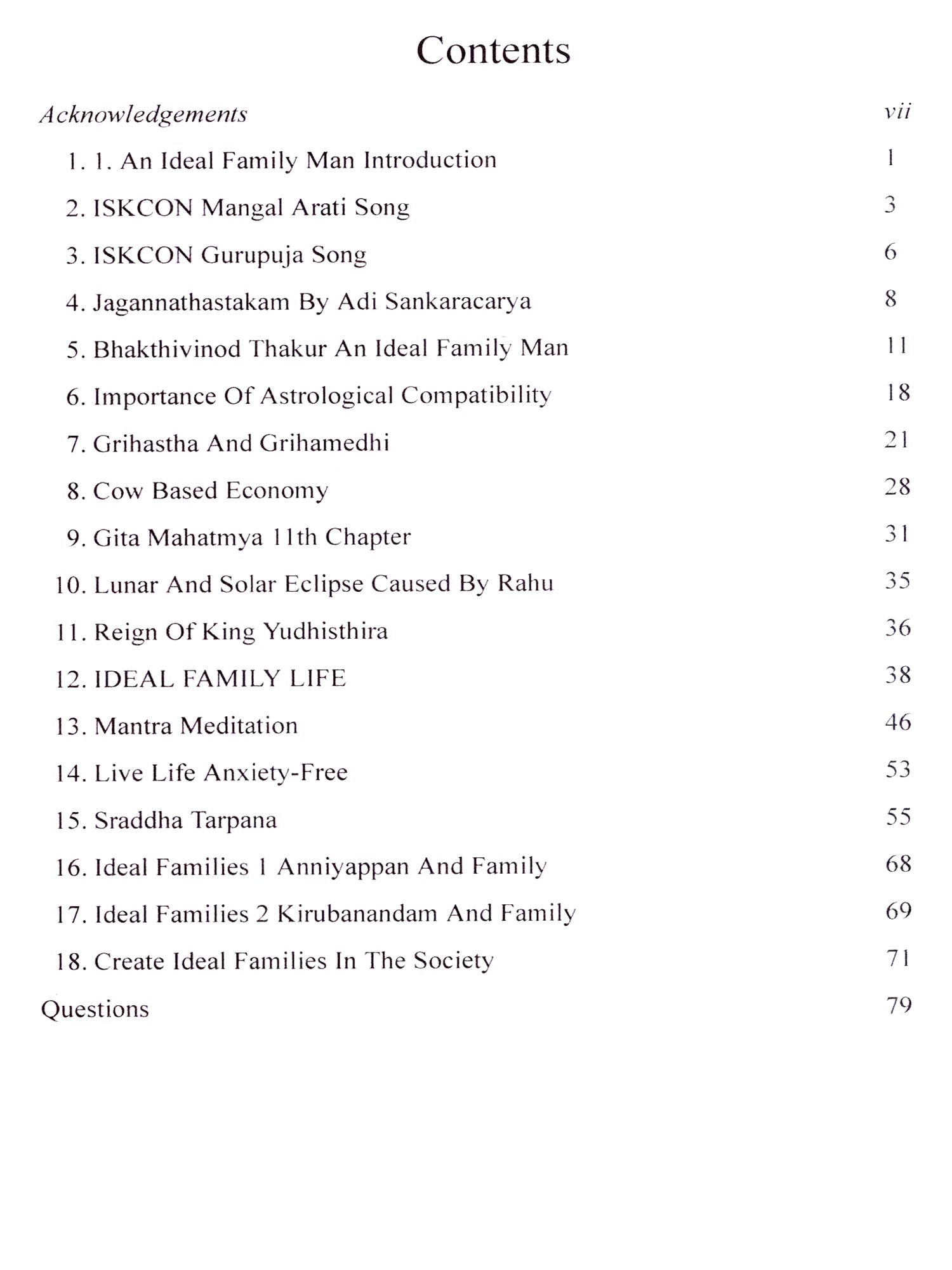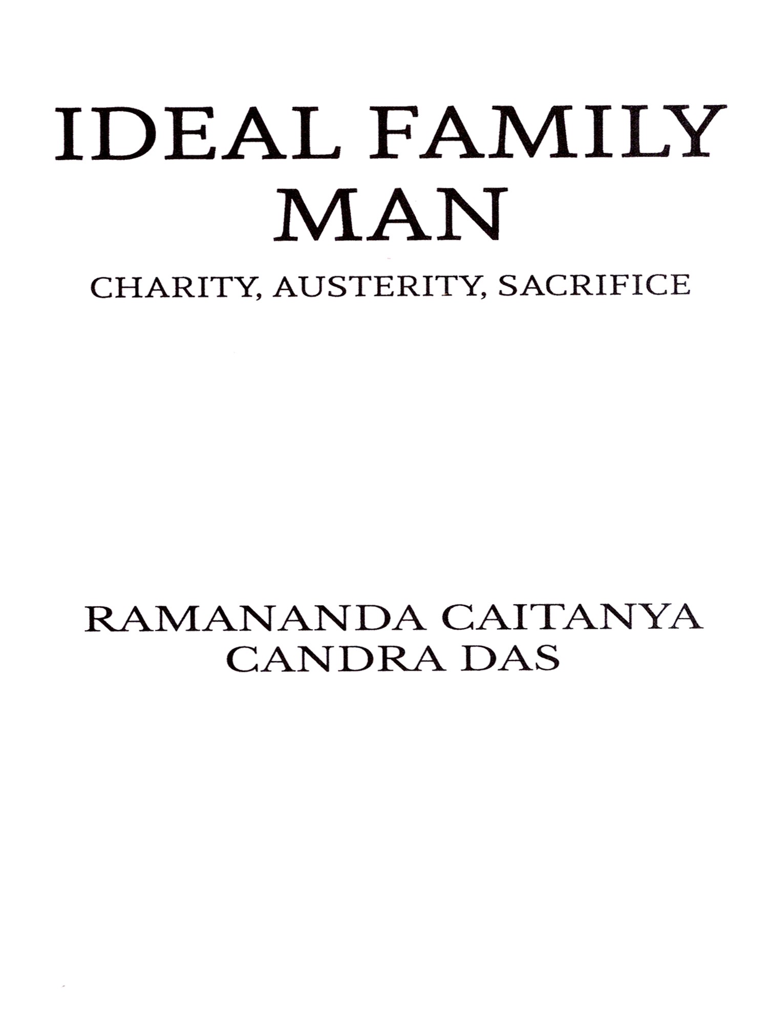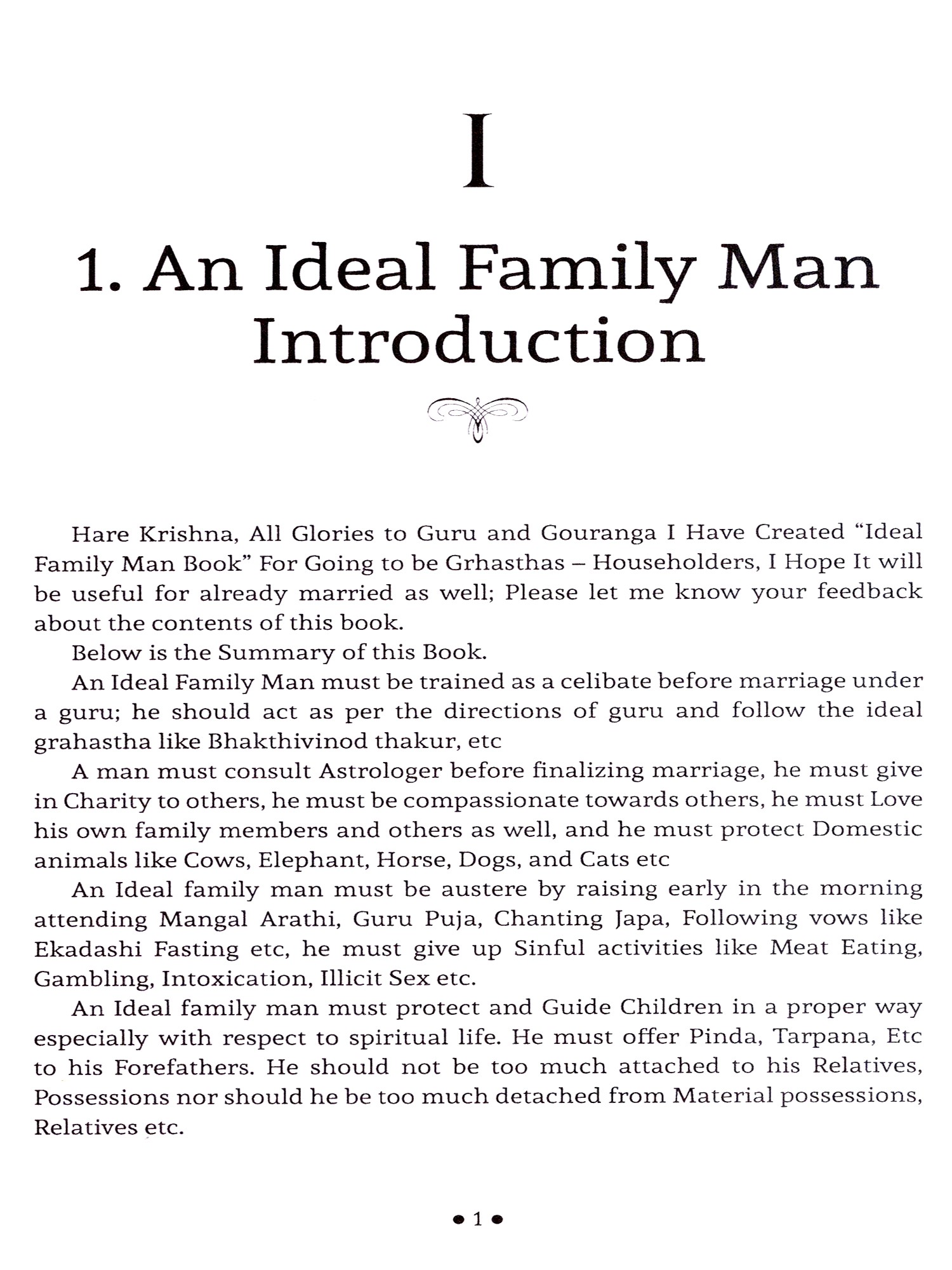 An Ideal family man must be austere by raising early in the morning attending Mangal Arathi, Guru Puja, Chanting Japa, following vows like Ekadashi Fasting etc, he must give up Sinful activities like Meat Eating, Gambling, Intoxication, Illicit Sex etc. An Ideal family man must protect and Guide Children in a proper way especially with respect to spiritual life. He must offer Pinda, Tarpana, Etc to his Forefathers. He should not be too much attached to his Relatives, Possessions nor should he be too much detached from Material possessions, Relatives,tc.