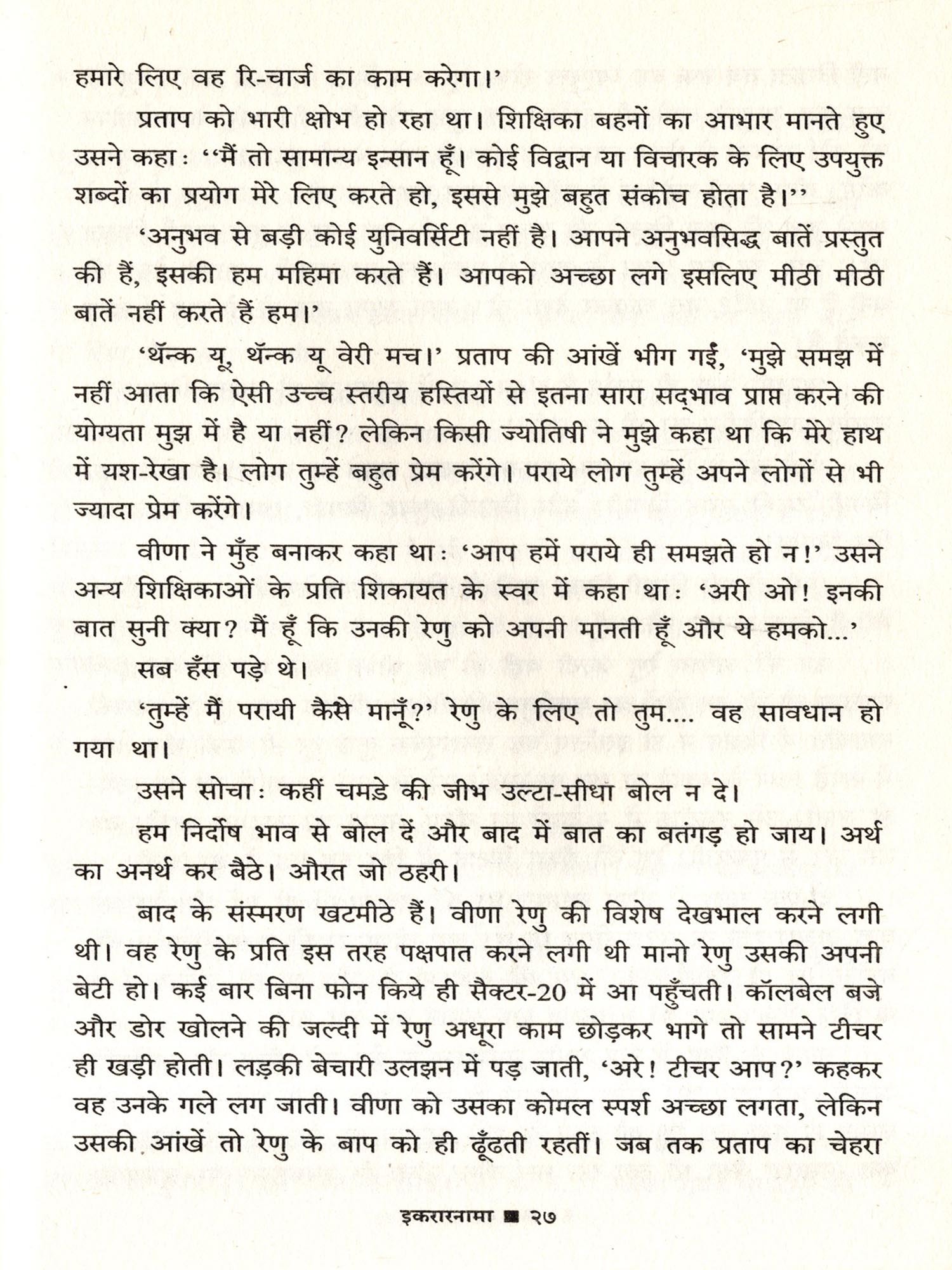 मैं प्रतिभासन्पन्न लेखक व अनुवादक का अंतःकरण से धन्यवाद करता हूँ और आशा करता हूँ कि गुजराती कथासाहित्य की यह विशिष्ट रचना हिन्दी के पाठक समुदाय को बहुत पसंद आएगी ।
