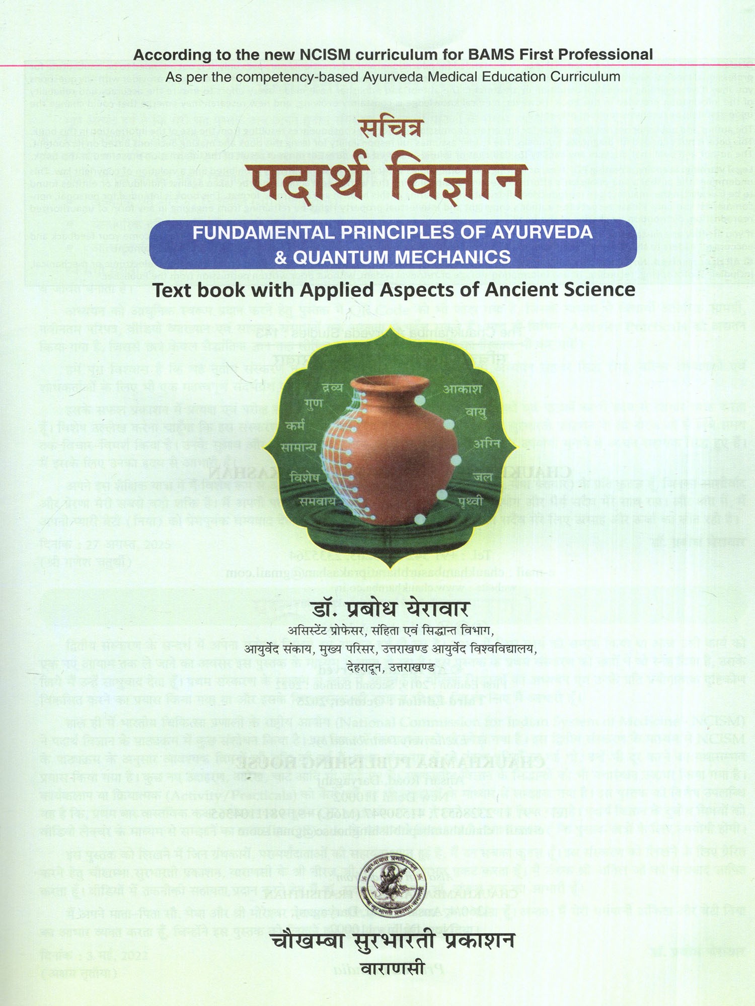 हाल ही में भारतीय चिकित्सा प्रणाली के राष्ट्रीय आयोग (National Commission for Indian System of Medicine -NCISM) ने पदार्थ विज्ञान के पाठ्यक्रम में कुछ संशोधन किया है। इस विषय में क्रियात्मक को भी जोड़ा गया है। इस द्वितीय संस्करण के माध्यम से NCISM के पाठ्यक्रम के अनुसार आवश्यक विषयों की वृद्धि की गई है। प्रथम संस्करण में जो टंकण त्रुटियाँ रह गई थी, उन्हें भी दूर करने का यथासम्भव प्रयास किया गया है। कुछ नए उदाहरण, आरेख, चार्ट आदि भी जोड़ें गए हैं। समकालीन विज्ञान के सिद्धान्तों को भी यथास्थान उजागर किया गया है। कार्यकलाप या क्रियात्मक (Activity/Practicals) को कैसे करें यह भी उदाहरणों के माध्यम से समझाया गया है। इस पुस्तक की विशेष उपलब्धि यह है कि, प्रथम बार वास्तविक कक्षा अध्ययन का अनुभव QR code के माध्यम से लाने का प्रयास किया गया है। पदार्थ विज्ञान के दुर्योध विषयों को वीडियो लेफार के माध्यम से समइवने का प्रागास इन QR code के माध्यम से किया गया है। आशा करता हूँ कि पुस्तक छात्रों के लिए उपयोगी होगी।