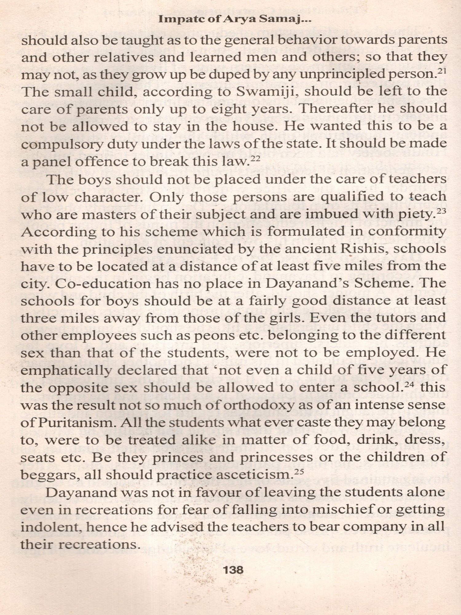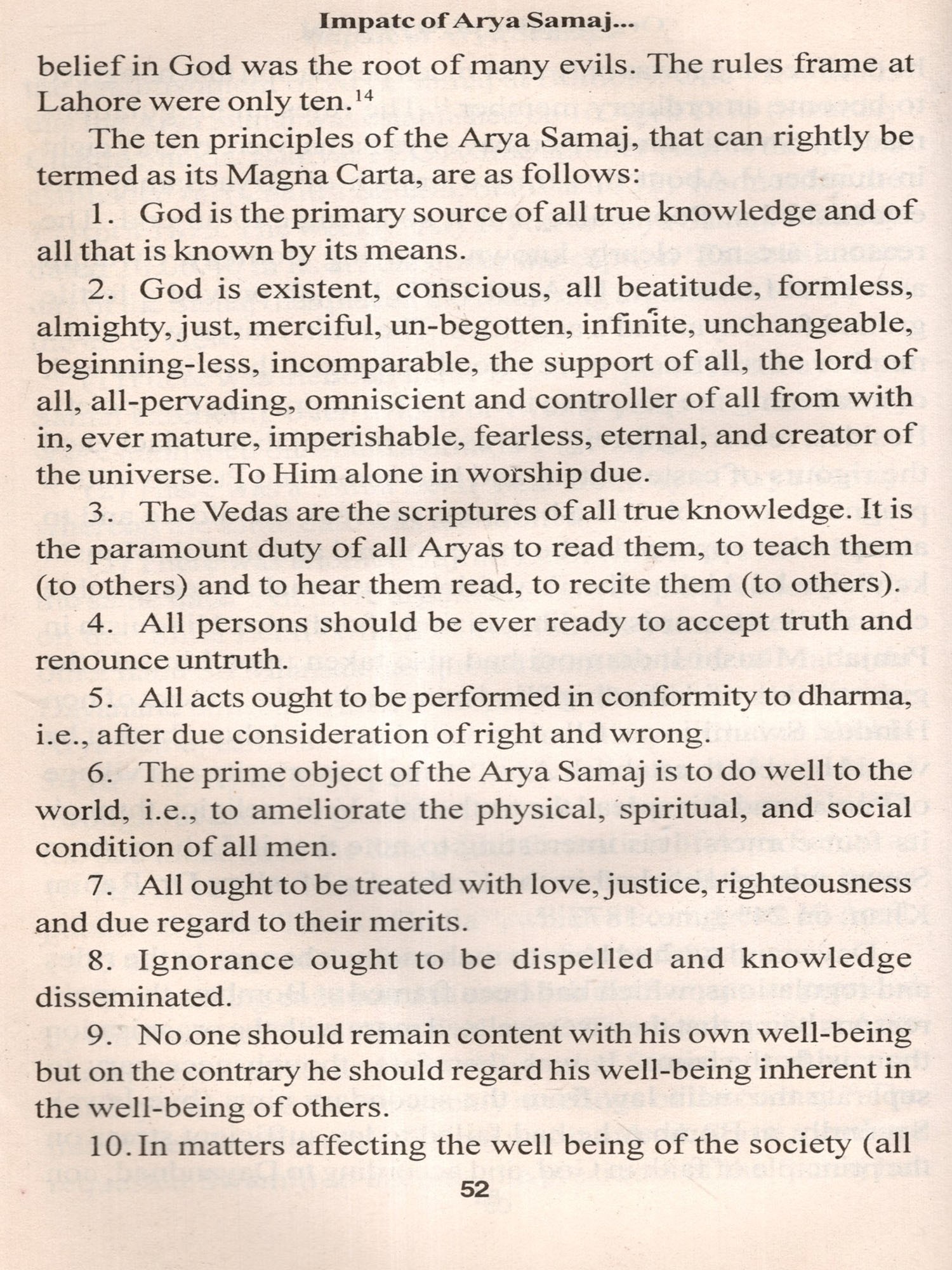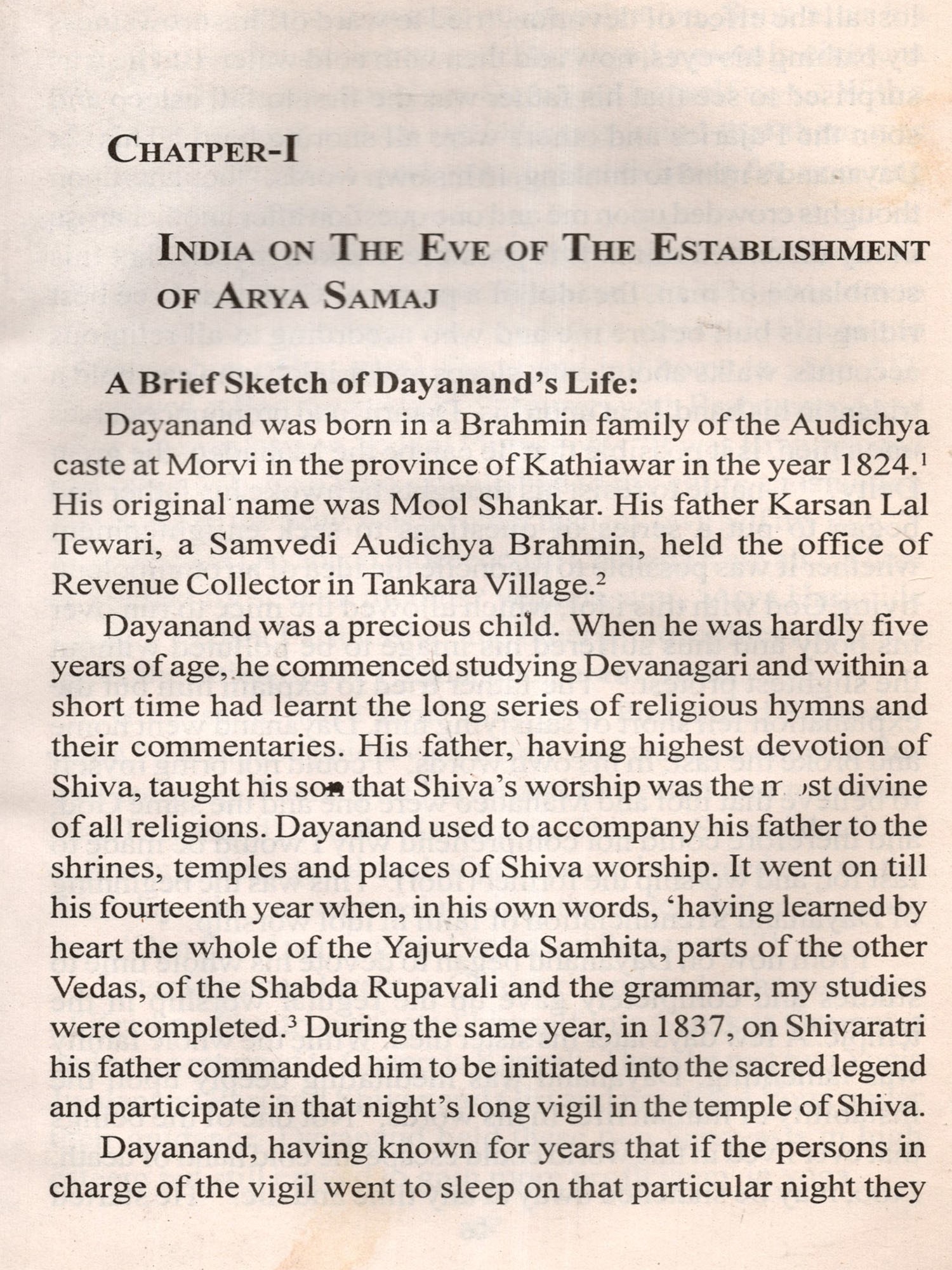 Dayananda Saraswati claimed that 'any scientific theory or principle which is thought to be of modern origin may be proved to be set forth in the Vedas'. On an ultimate analysis his general principle amounts to this, that "the Vedas, contain all the truth". The interpretation of Dayananda, however, differs widely from the traditional Hindu as well as the modern Western exegensis.