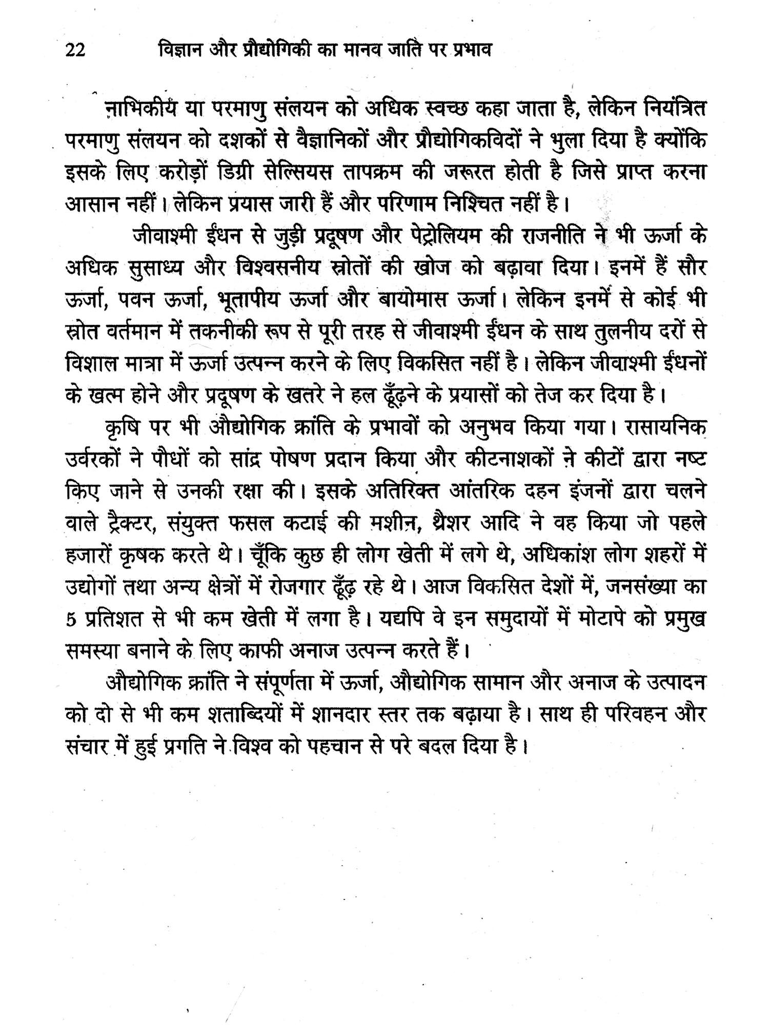 अनुवर्ती अध्यायों में, विज्ञान और प्रौद्योगिकी के समाज पर बहुपक्षीय प्रभाव की चर्चा की गई है। हम सब इस क्रांति द्वारा उन्मुक्त बलों द्वारा गहराई से प्रभावित हैं, चाहे हमें मूल कारण का पता हो या नहीं। लेकिन समाज परिवर्तनों को बेहतर ढंग से संचालित कर सकता है अगर लोग इस क्रांति के लिए उत्तदायी बलों को जिसने पिछली दो शताब्दियों में दुनिया को तेजी से घुमा दिया है, अच्छे से, विस्तार में जान और समझ लें।