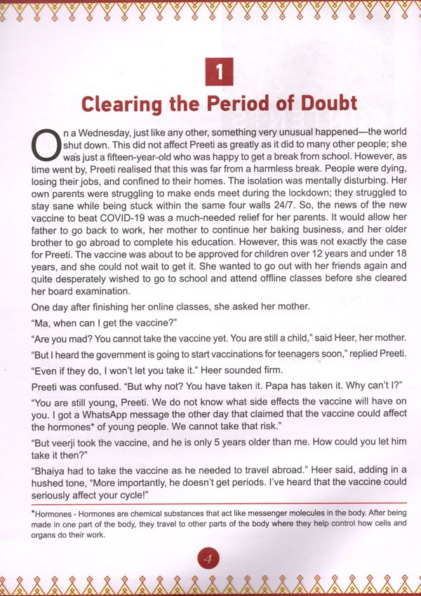 A collection of short stories for the age group 15-18, dealing with different experiences of adolescents during the pandemic. The stories discuss issues like death, the loss of important teenage experiences, misinformation, vaccines, concerns for the differently-abled, vaccination for marginalised communities, depression and mental well being, and so on. Vaccination was the key to all issues, and the stories - based on real life incidents - dispel the doubts and notions surrounding vaccination.