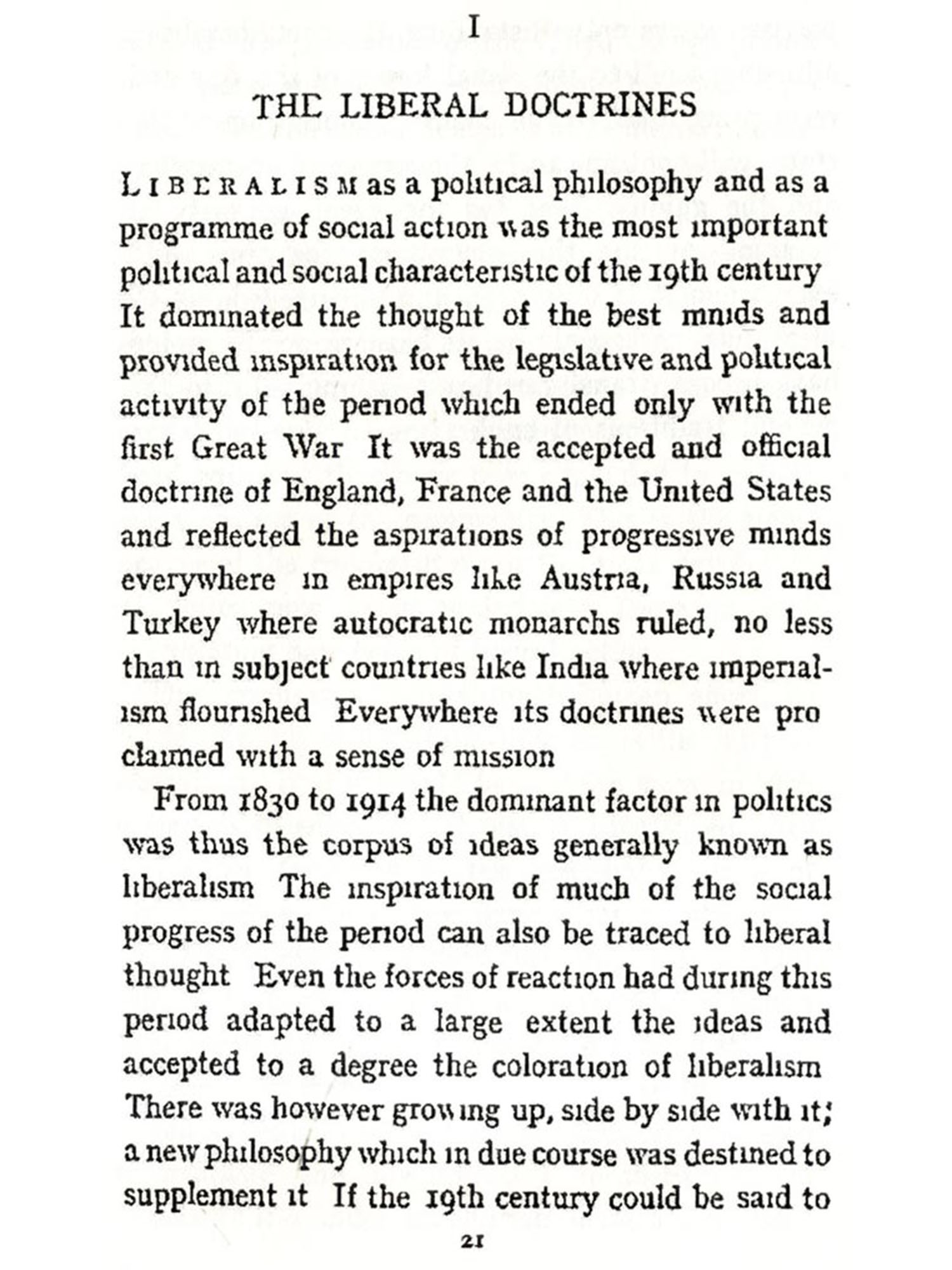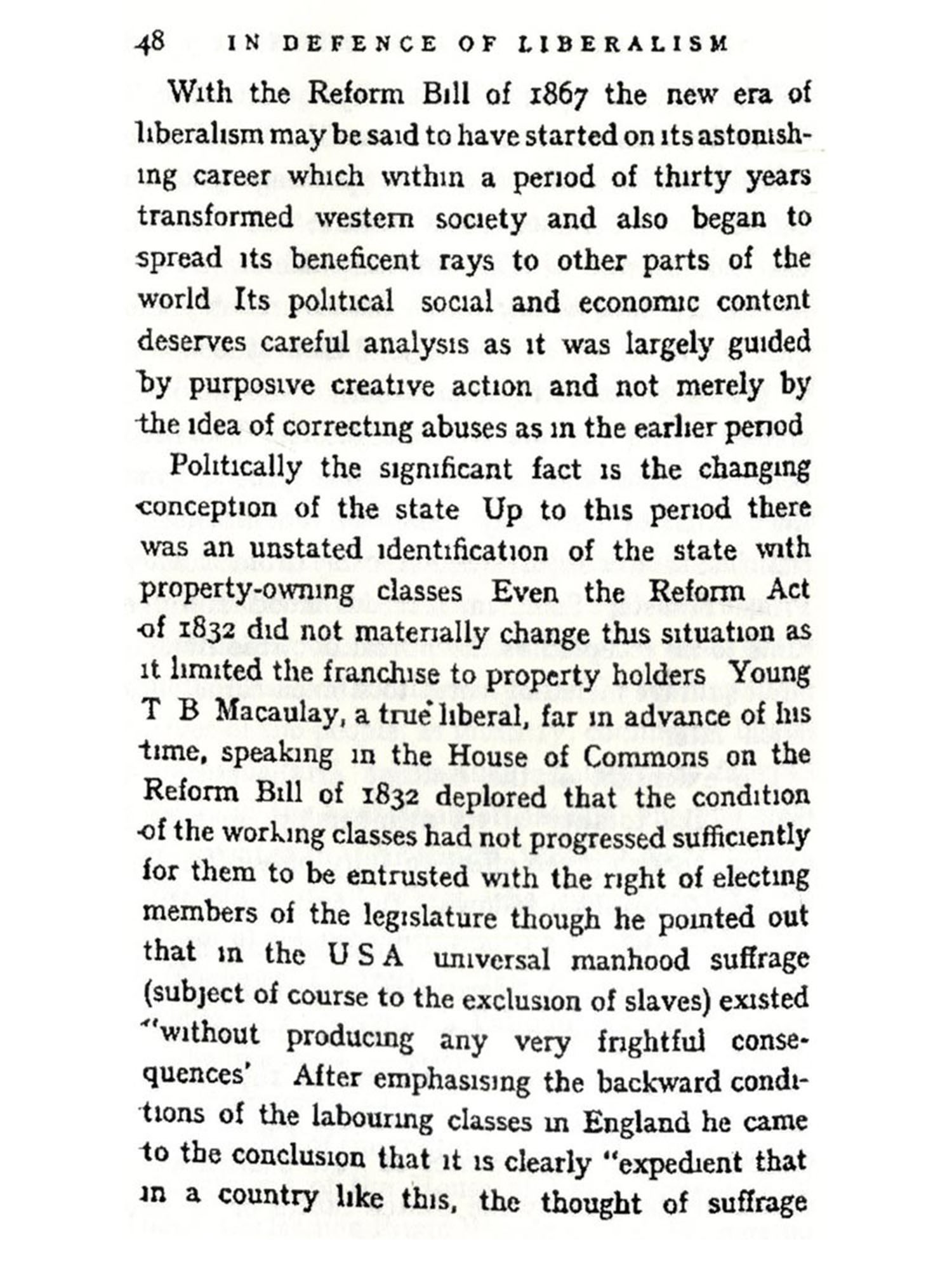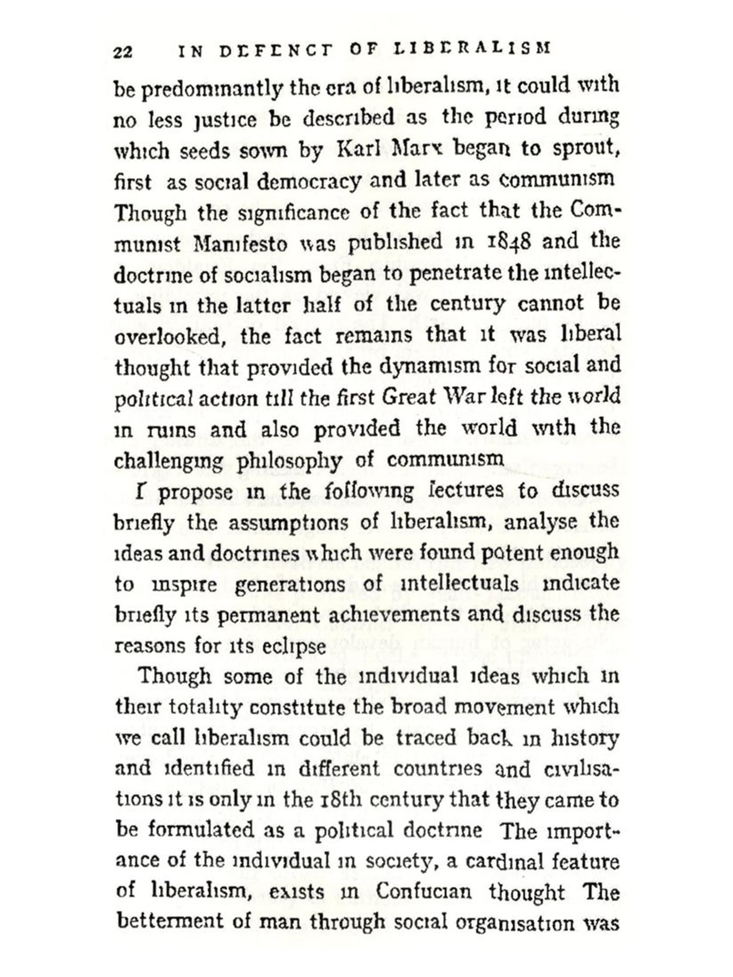 In the lectures that follow I have dealt with the liberal doctrines their growth eclipse and fulfilment by general acceptance over large areas in Europe, America and Asia, but I have only alluded briefly and enpassant to the position of liberal thought in India Nor have I, in view of the unavoid able limitation of time allowed for the lectures, dealt with the integral relationship of liberal thought with the idea of progress except in a casual way.