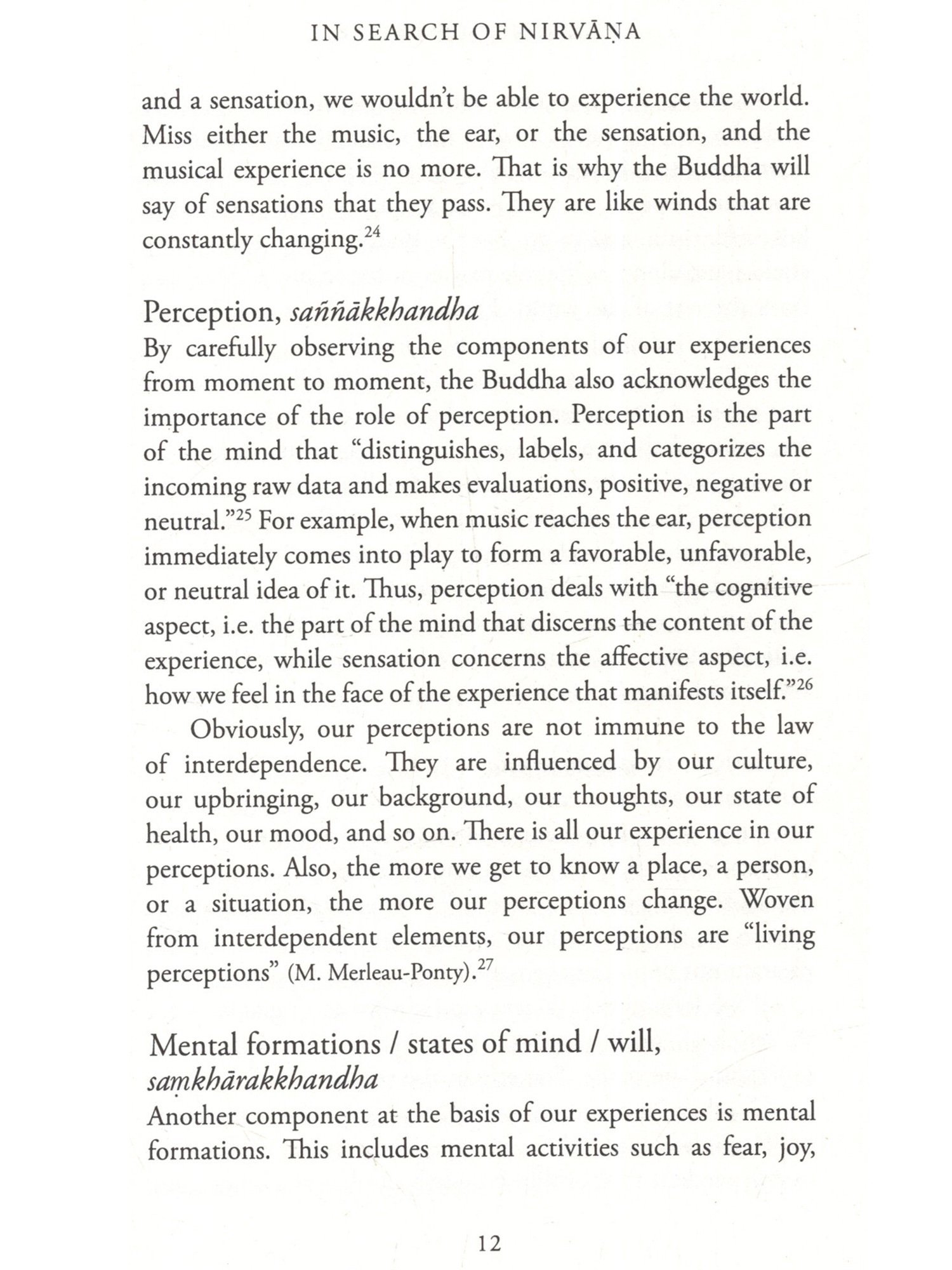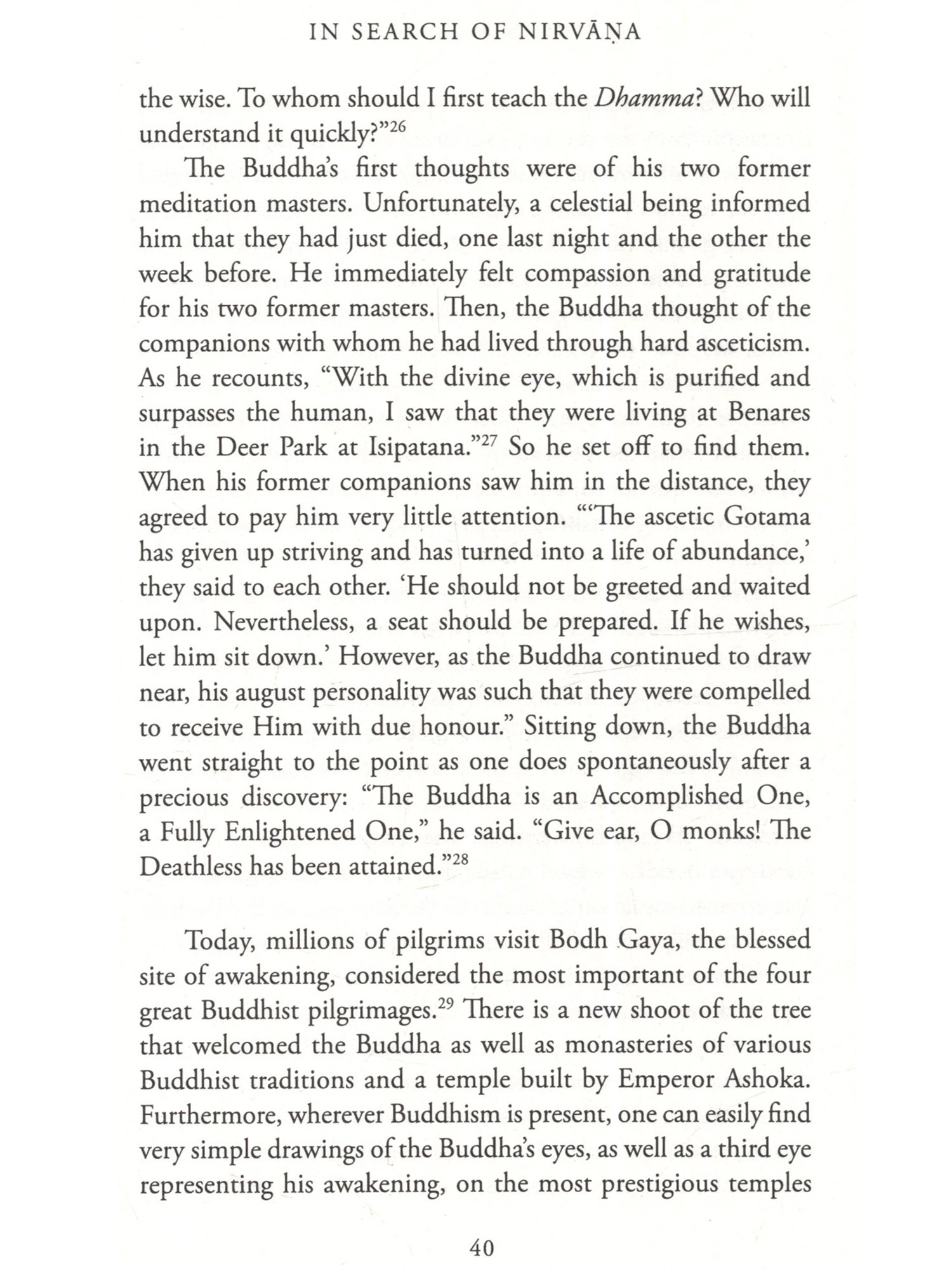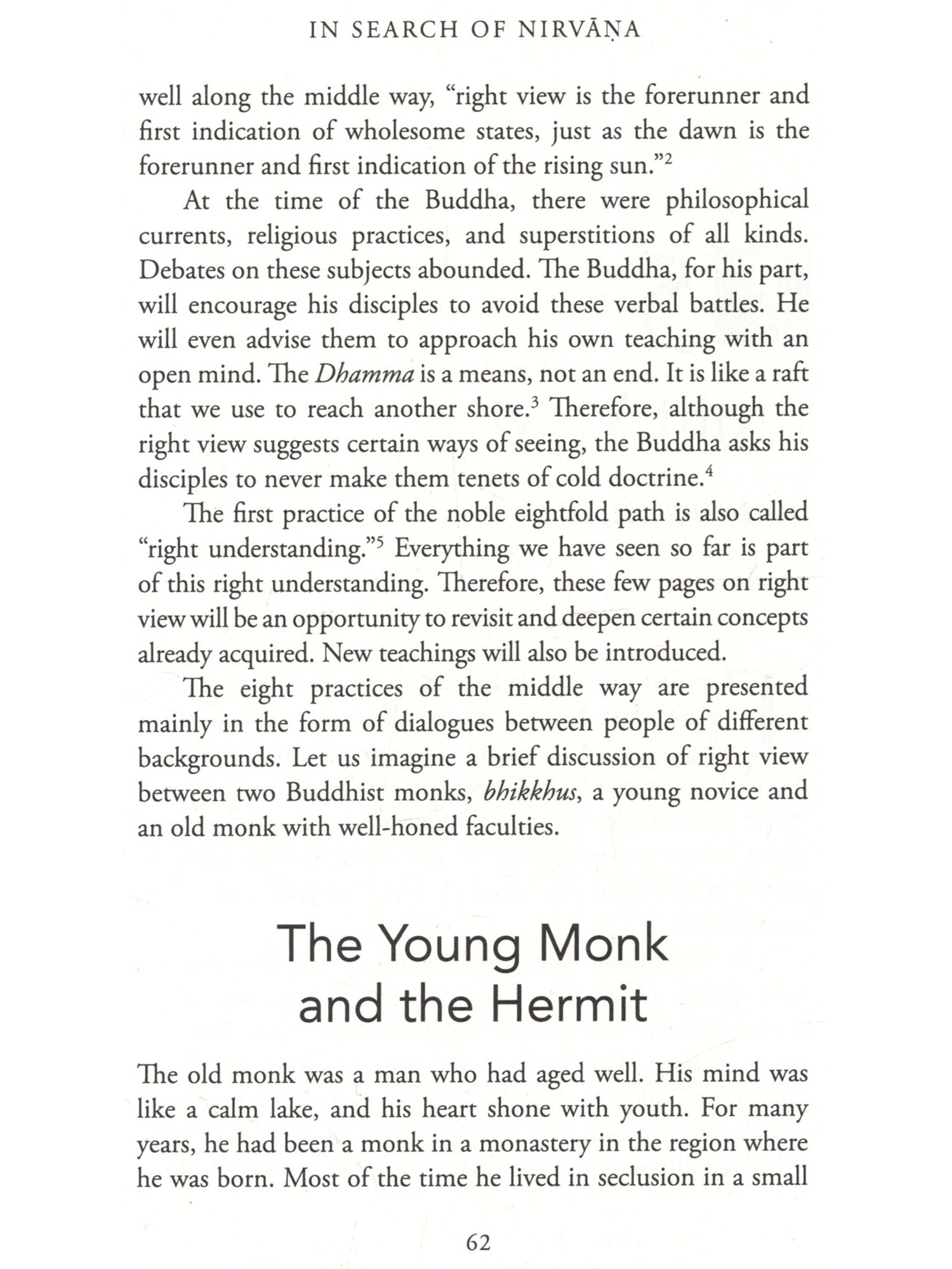 IN SEARCH OF NIRVANA Buddha's Path in Today's World André Fortier After years devoted to his noble search, the sae Gautama attained awakening, nirvana, and became the Buddha. Wishing to guide humanity toward this ultimate liberation, he proclaimed to his disciples four noble truths and eight practices that lead to nirvana. Anyone, whether Buddhist or not, can explore these extraordinary teachings-and benefit from them. Presented here with great clarity, often through dialogues, the book is both educational and inspirational. It also provides numerous references and allows for reading on multiple levels. This book also offers path to an art of living and includes meditations exercises that are accessible and easy to integrate into daily life. In a conversational and constructive way, In Search of Nirvana gives a voice to the discoveries of eminent scholars of early Buddhism. Rooted in today's world, it addresses essential questions at the individual and societal levels. Readers will come away from this engaging book both optimistic and grateful for Buddhism. In addition to his rich and varied lives experience, André Fortier holds a degree in philosophy and a doctorate in spirituality. In this work, he shares insights from more than a decade of research and practice in Buddhism. The Author's diverse experiences and friendship with people From different cultures and spiritual traditions inspire his thinking.