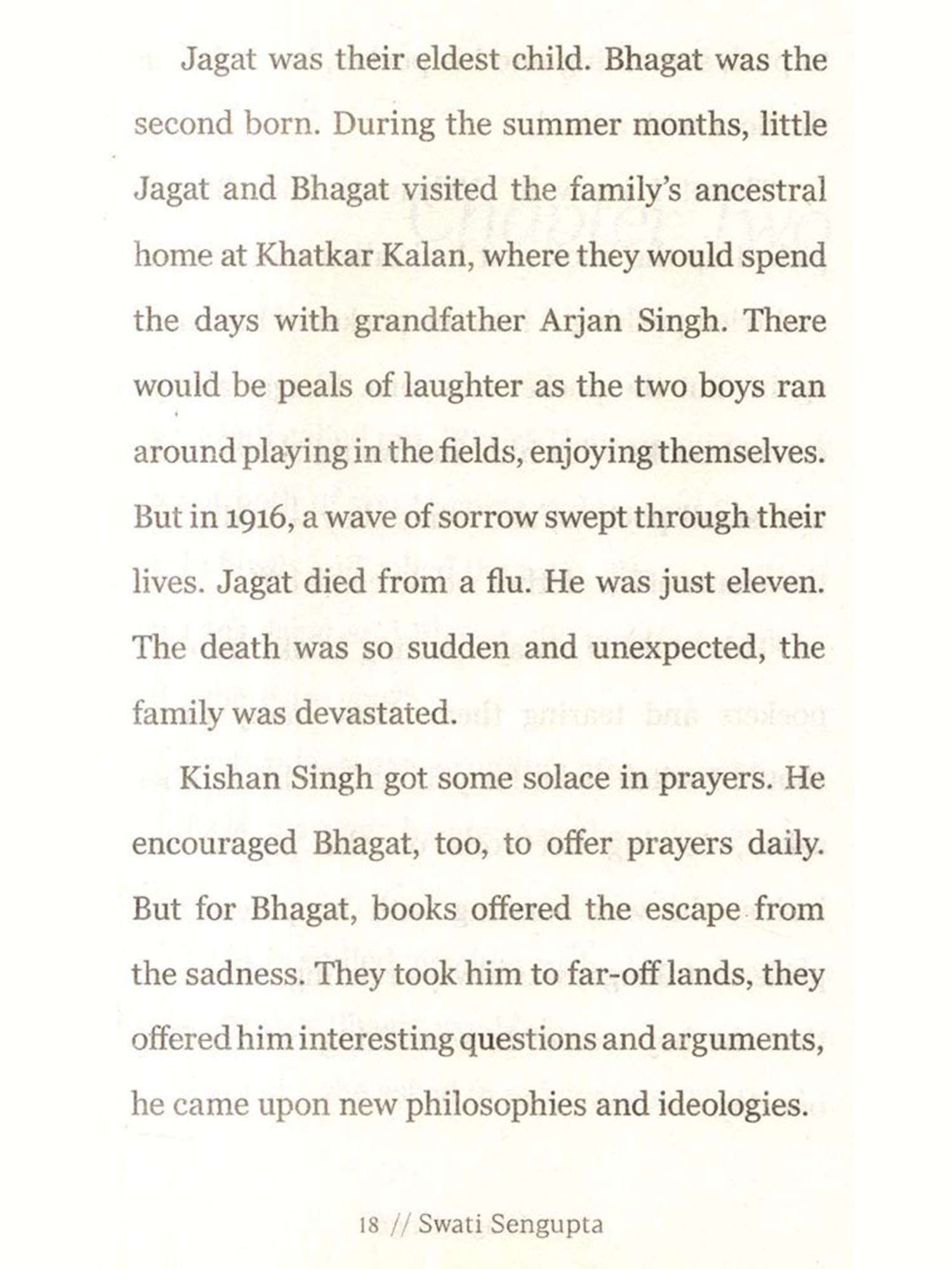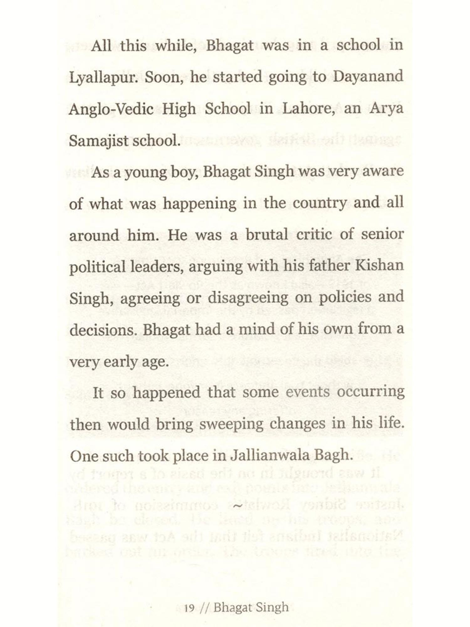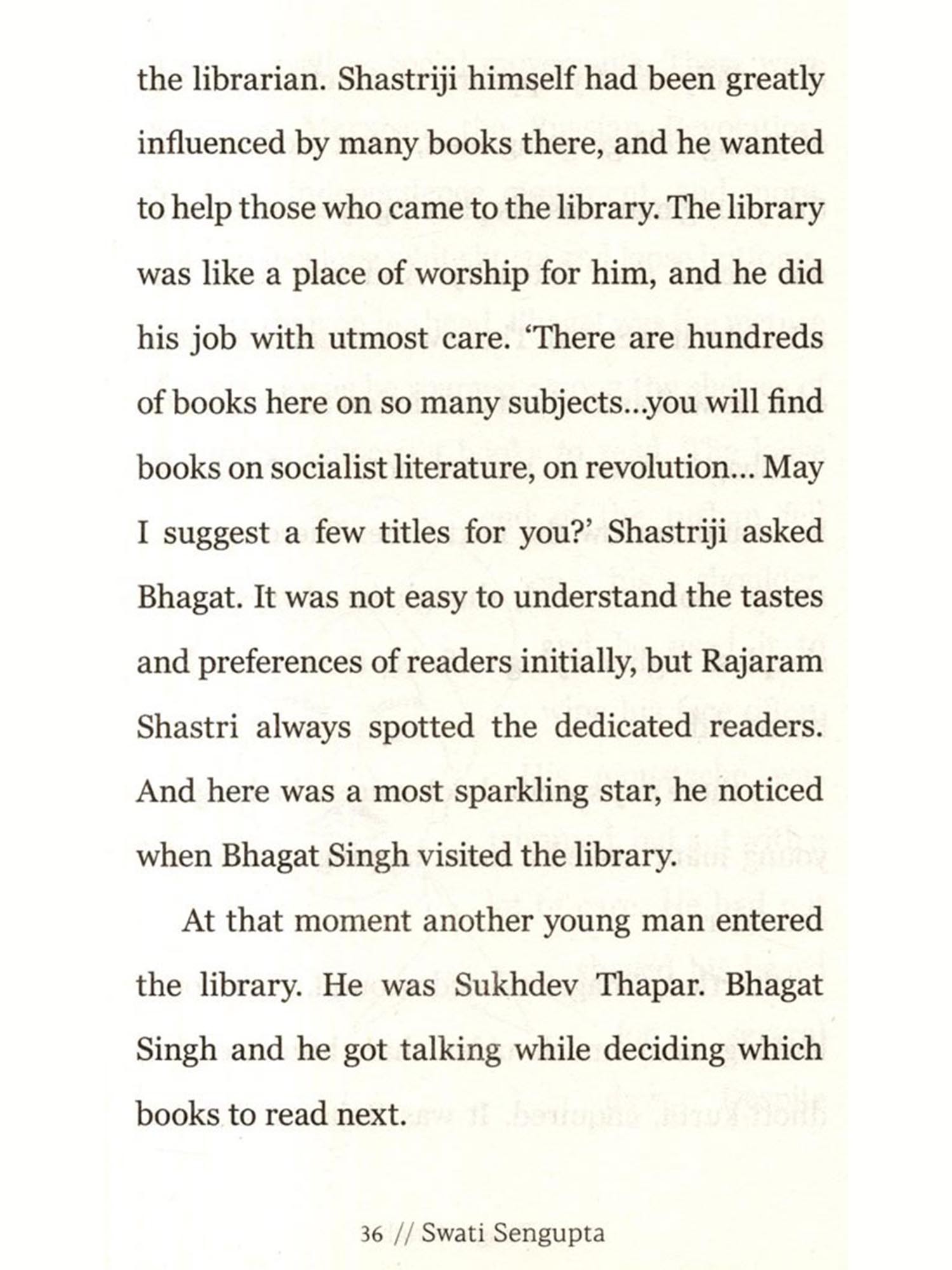 Born in 1907 to a family of farmers in Punjab, Bhagat Singh at the age of three had declared that he was sowing guns so he could fight the British colonisers. As he grew up, Bhagat Singh became a widely read and fiercely intelligent man. He would dedicate his life to not only making India free but also towards creating a more equitable society. Along with many young men and women, he planned seemingly impossible acts of daring, rebelling against the oppression and exploitation of the British. When Lala Lajpat Rai died of injuries inflicted by the police under James Scott, Bhagat Singh and his revolutionary friends sought to avenge the death of the great freedom fighter. However, they ended up mistakenly killing John Saunders, another British officer. Along with Batukeswar Dutt, he decided to storm the Central Assembly in Delhi to protest unfair new laws. The two raised slogans and threw pamphlets, then refused to escape, waiting to be arrested. When he was twenty-four years old, Bhagat Singh was put to death. Till the very end, he refused to bow down. His astonishing life and death are brought to life in this lucid new biography for young readers.