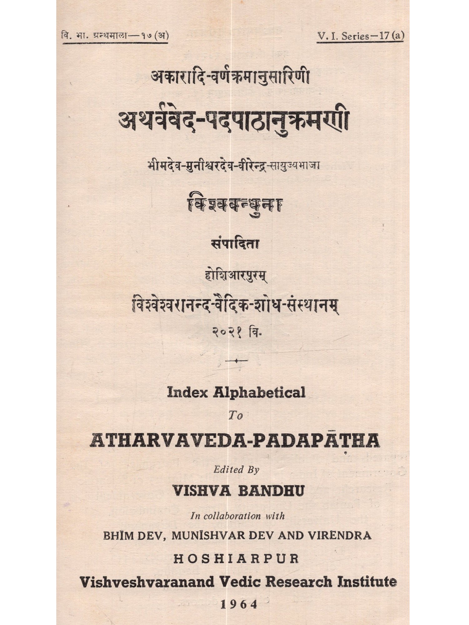 अकारादि-वर्णक्रमानुसारिणी अथर्ववेद-पदपाठानुक्रमणी: Index Alphabetical To Atharvaveda-Padapatha (An Old and Rare Book)