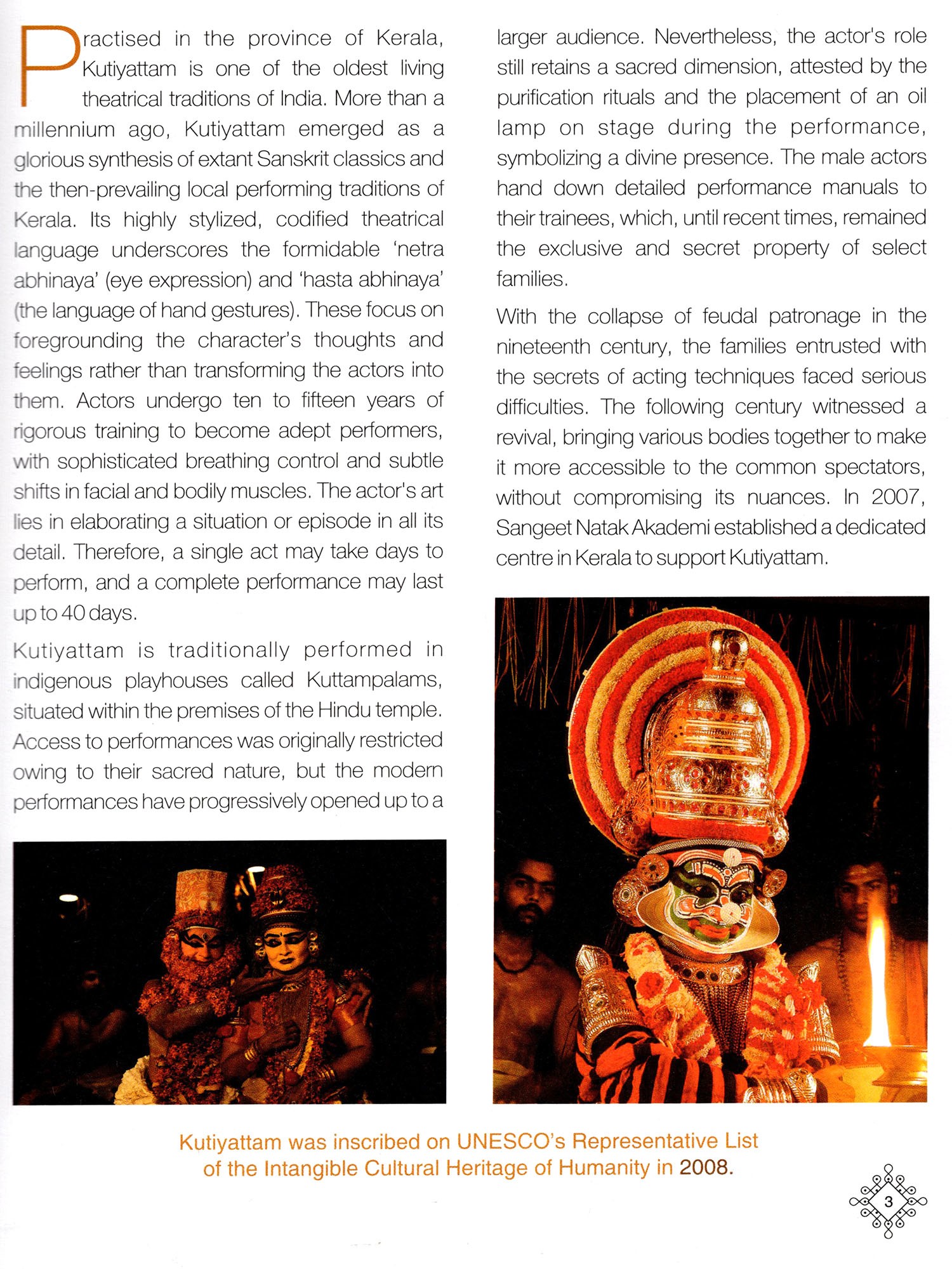 The narration of India's intangible cultural heritage (CH) is a sublime journey steeped in millennia of living traditions, artistic expressions, and shared experiences. Our heritage manifests not merely as practices or performances, but as embodiments of parampara the unbroken flow of knowledge and aesthetic wisdom transmitted from generation to generation. Retention of this sutra, safeguarding this lineage, is our dharma, for that sustains the world, and sol say "संस्कृतेन धार्यत लोक.