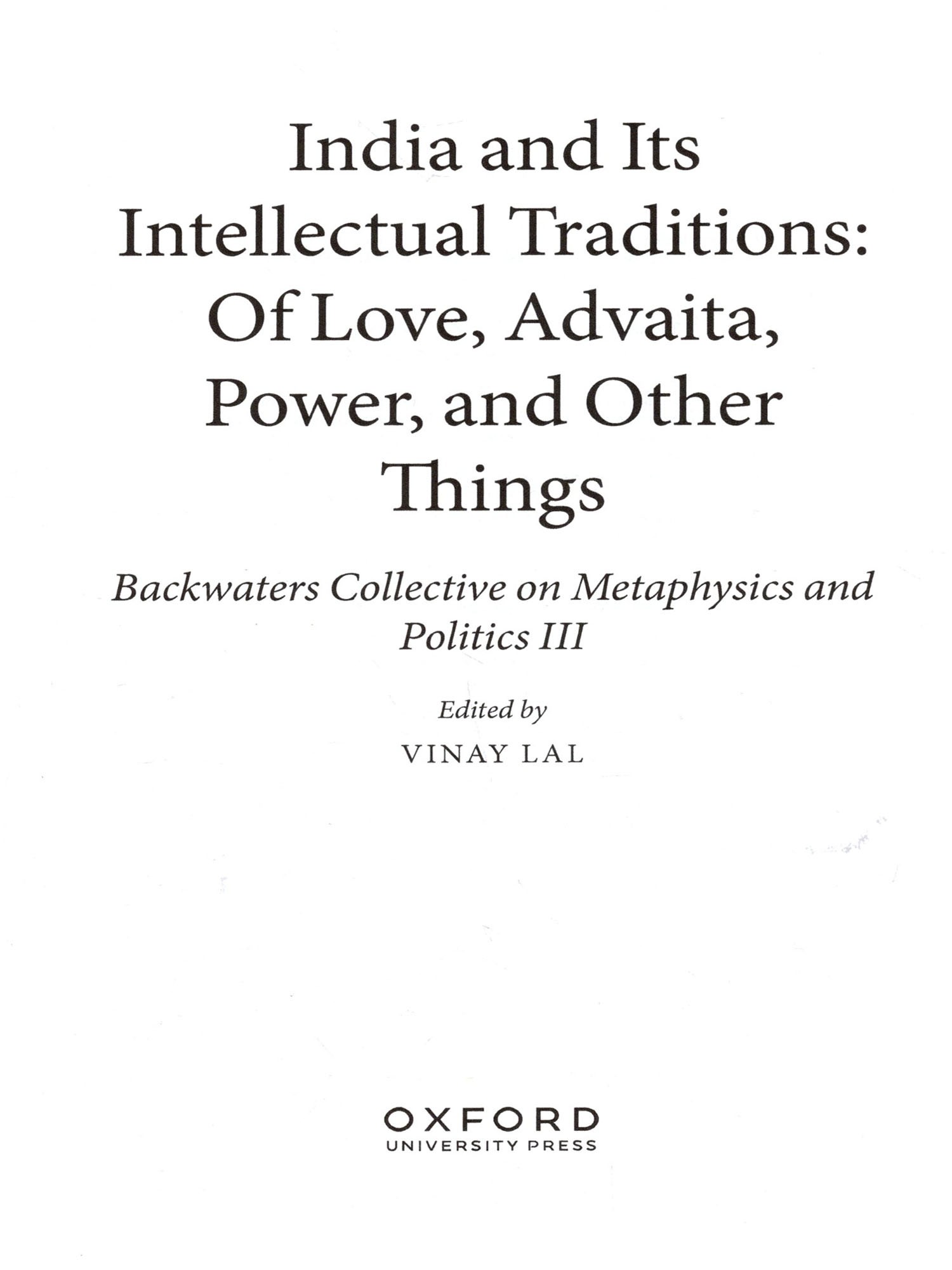India and Its Intellectual Traditions: Of Love, Advaita, Power, and Other Things, the third volume to emerge from the enterprise known as The Backwaters Collective on Metaphysics and Politics, attempts to further the collective's ambition to put into question the certitudes of conventional social science discourse, decolonize the dominant knowledge frameworks, and understand how the intellectual and cultural resources of Indian civilization may be deployed to think both about some problems in contemporary politics and culture and to introduce greater plurality into the world of modern knowledge systems. Some of the collective's members remain deeply committed as well to reinitiating metaphysics into politics, and similarly the collective's enduring interest in Narayana Guru is reflected in at least three chapters. Though engagement with Gandhi and Ambedkar is a familiar part of the Indian intellectual landscape, other chapters on offer pivot around histories of power, performative traditions, and modes of worship. Unlike the scholarship that is now the norm, organized around a distinct theme, this volume exhibits a more daring approach to India's intellectual traditions, traversing the world of Kannada intellectuals, the Kashmir Shaiva tradition, a Marathi Bhakti poet, and a contemporary Indian philosopher as much as conceptual ideas drawn from a wide array of Indian texts and experiences.