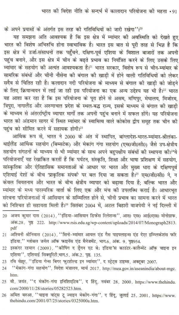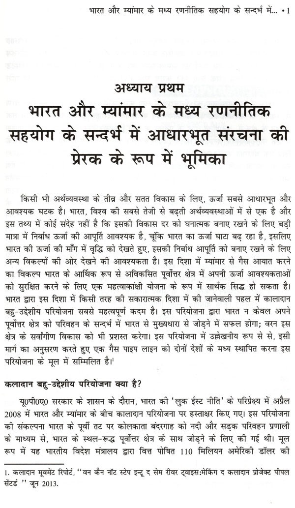 भारत- म्यांमार सीमा पार आधारभूत संरचनाओं का विकास एवं उर्जा सहयोग : कलादान परियोजना का अध्ययन: India- Myanmar Cross Border Infrastructure Development and Energy Cooperation: Study of Kaladan Project