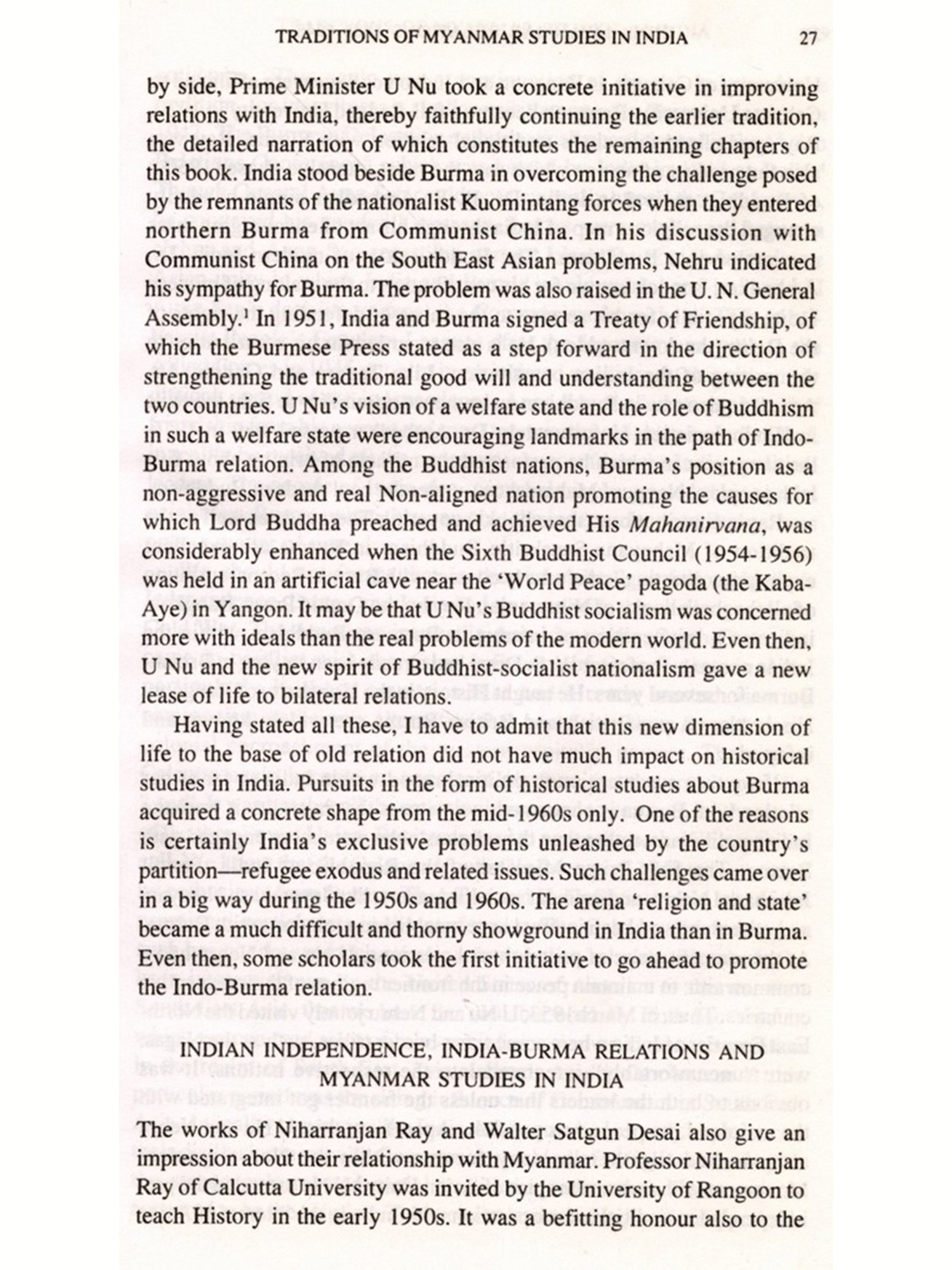 The onslaught of imperialism and colonialism upon Burma and India was too harsh. Yet, the enormously powerful imperialists could not estimate the strength of the everlasting bond between the two people. Thus, they had to separate a country from their Indian Empire, which they had annexed and attached all too unnaturally, for there was no need to attach Burma to India: Burma was never culturally separated from India.