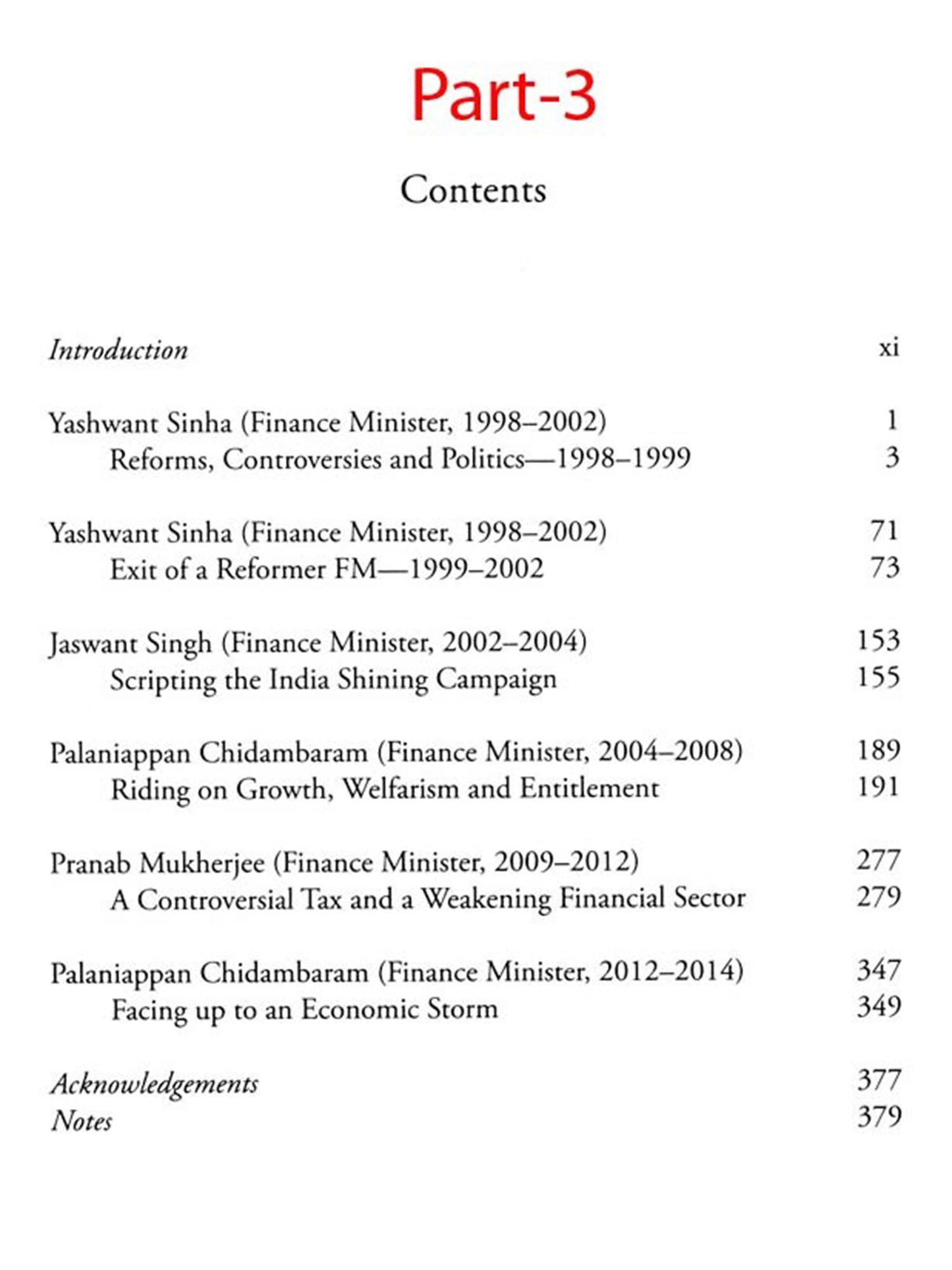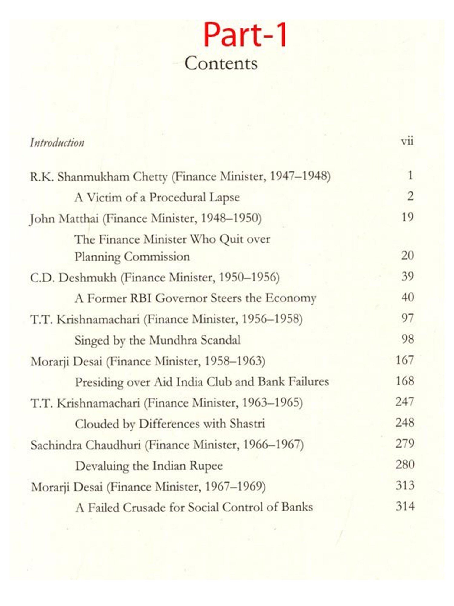 In an ideal world, the performance and exploits of all the twenty-five finance ministers of India so far should be captured in a single volume for ease of access and readability. However, the sheer scale of what these finance ministers achieved and the economic policy challenges each faced and tried to address is difficult to compress in a single volume without doing injustice to most of them. Hence, the present volume focuses only on ten finance ministers, who led the Indian government's exchequer from 1947 to 1977. It is interesting to note that during this period two prime ministers (Jawaharlal Nehru and Indira Gandhi) presented a full Budget each while holding additional charge of the finance ministry.