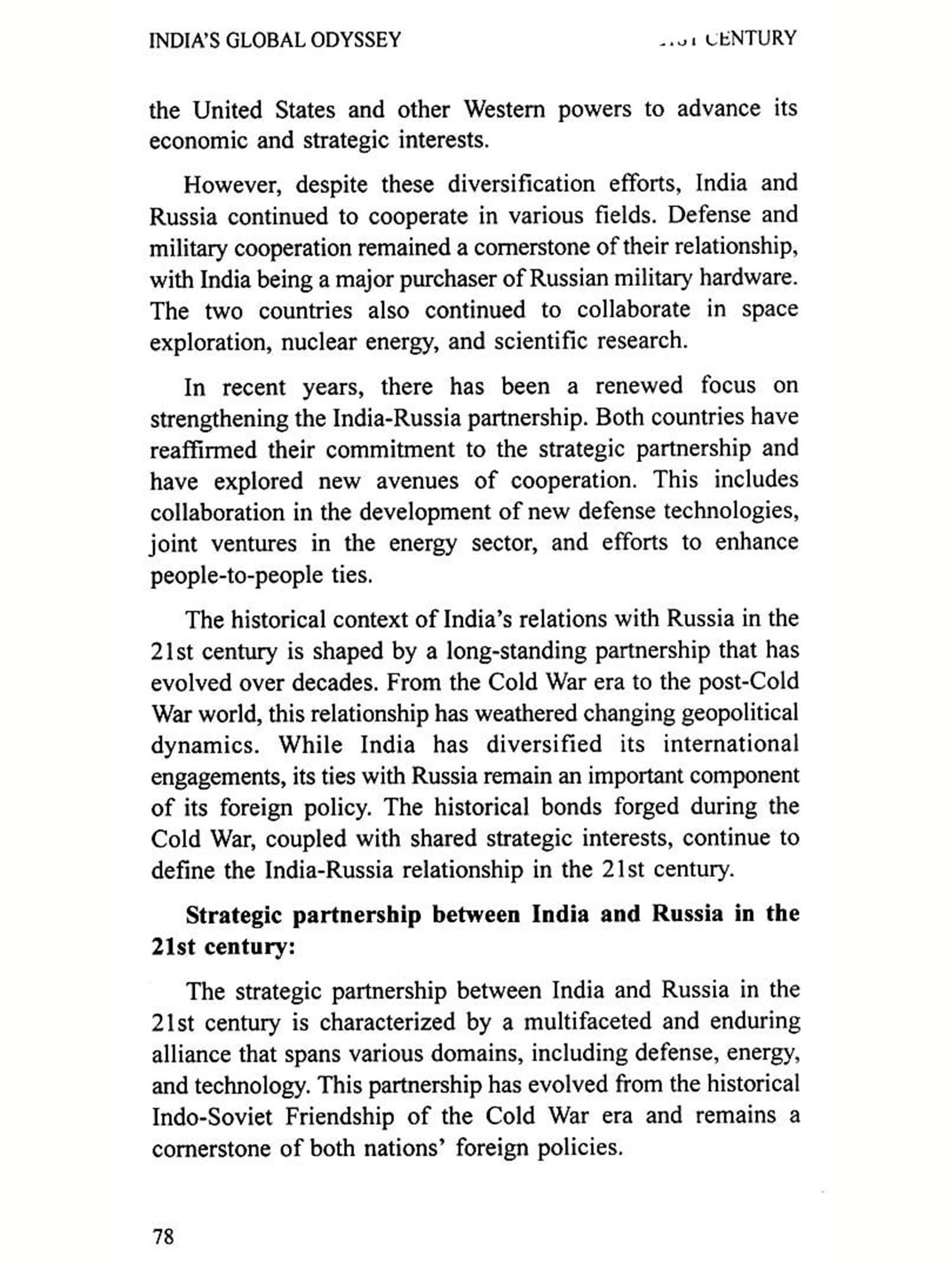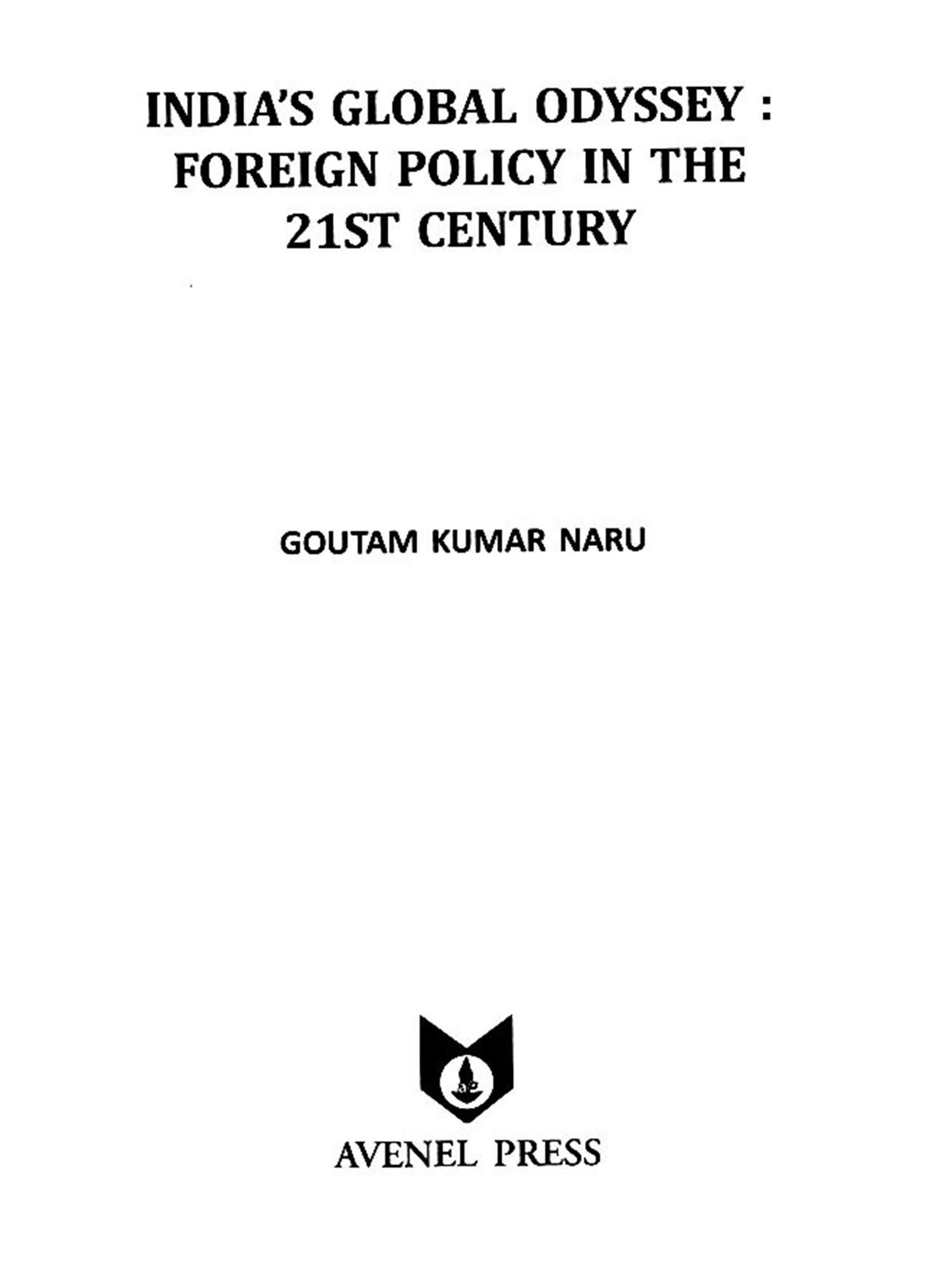 In embarking on this intellectual journey, ""Indian Global Odyssey: Foreign Policy in the 21st Century,"" I am deeply grateful for the unwavering support of my parents, my loving wife, and all those who have stood by me. I extend my heartfelt appreciation to my esteemed colleague and mentor, Devbani Raychaudhury, whose guidance has been invaluable. Furthermore, I extend my thanks to Avenel Press, my dedicated publisher, for believing in the significance of this work. This book represents a culmination of countless hours of research, reflection, and collaboration, and I am cager to share the insights and perspectives it contains with you, the reader.