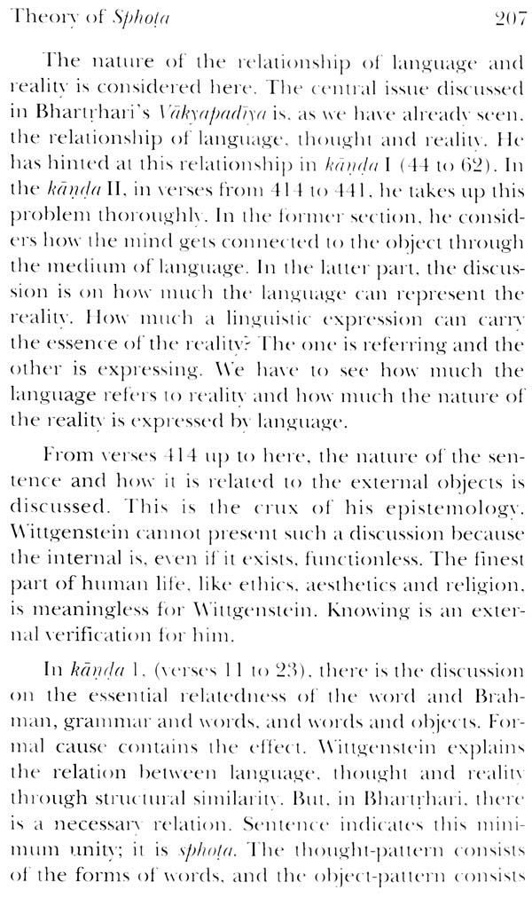 It is hoped that this volume will be of immense interest to the philosophers of language across countries. It should help them to explore and understand some of the intricate aspects of Bhartrhari's philosophy of language and compare it with the terminology and technique developed by modern Western thinkers.