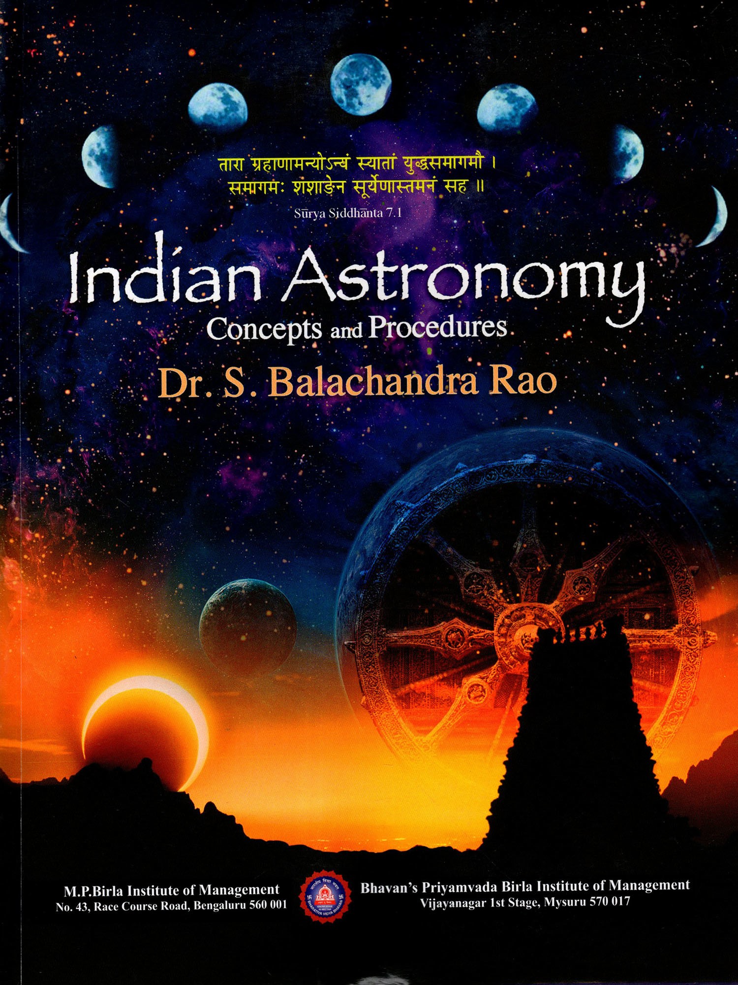 It is befitting that in the context of the year 2014 being celebrated as the Ninth Birth Centenary of one of the greatest Indian mathematicians and astronomers, Bhaskaracharya Il (born 1114 C.E.), the present book, "Indian Astronomy Concepts and Procedures" by Dr. S.Balachandra Rao is being brought out by our M.P. Birla Institute of Management (MPBIM).