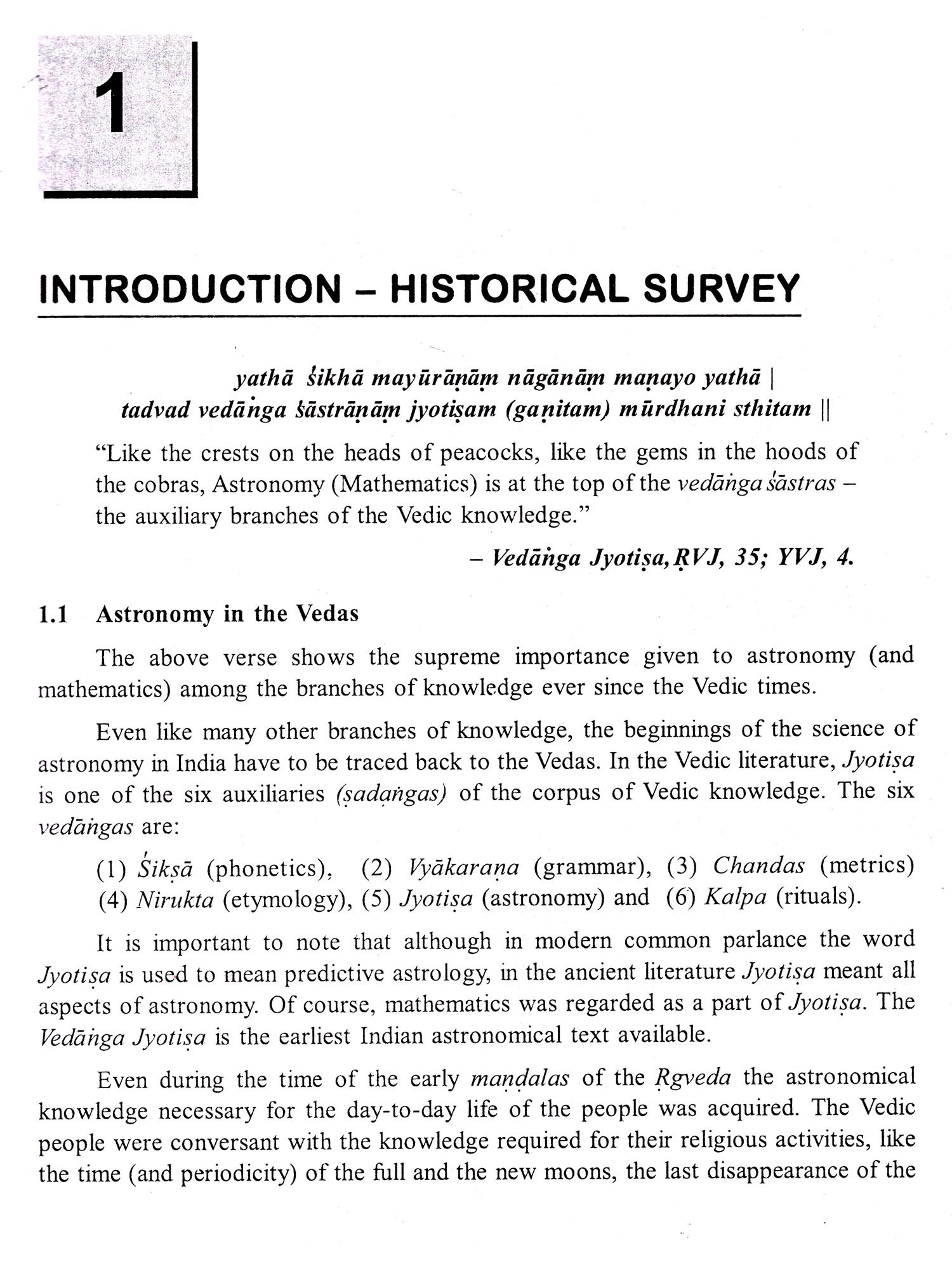 The development of astronomy in India from the Vedic times to the recent times - is briefly surveyed in Chapter 1.
