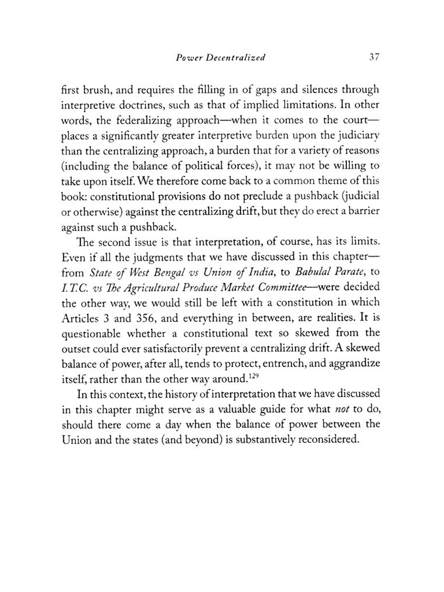 However, the centralizing drift is not inevitable. There have been moments of dissent and departure, which have illumined alternative possibilities. It is for the citizens of India to decide, ultimately, what vision(s) of constitutional power they want to adopt through their Constitution.