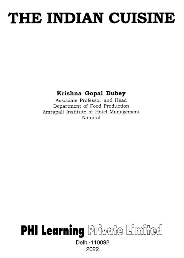 This book covers the four regions of Indian cuisine-the North Indian School, the East Indian School, the West Indian School, and the South Indian School-giving an elaborate knowledge about the different ways and styles of cooking, the important ingredients available, finishing techniques, and finally the modern ways of food preparation and its service in hotels and restaurants.