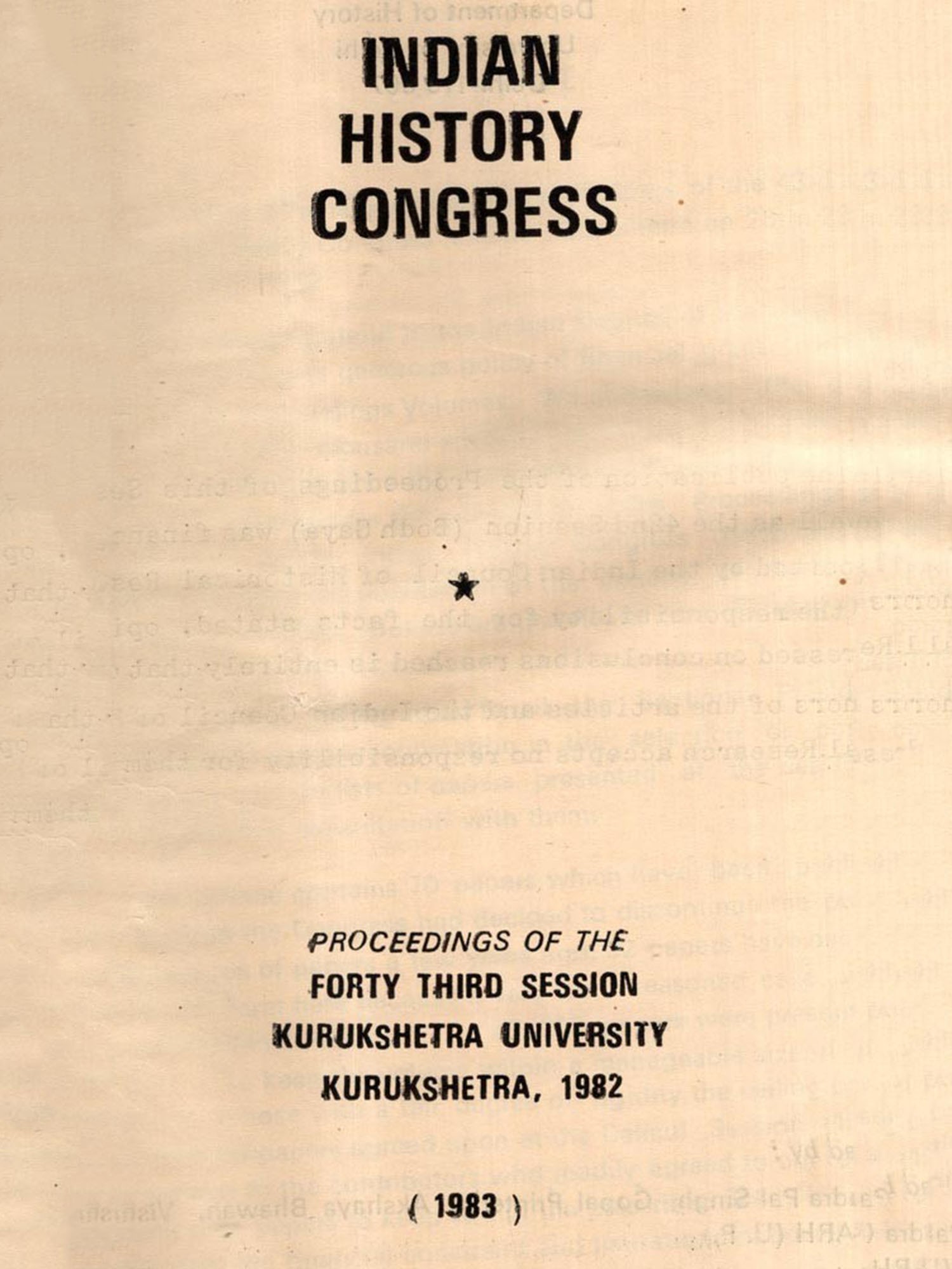 Indian History Congress- Proceedings of the Forty Third Session Kurukshetra University Kurukshetra, 1982 (An Old and Rare Book)