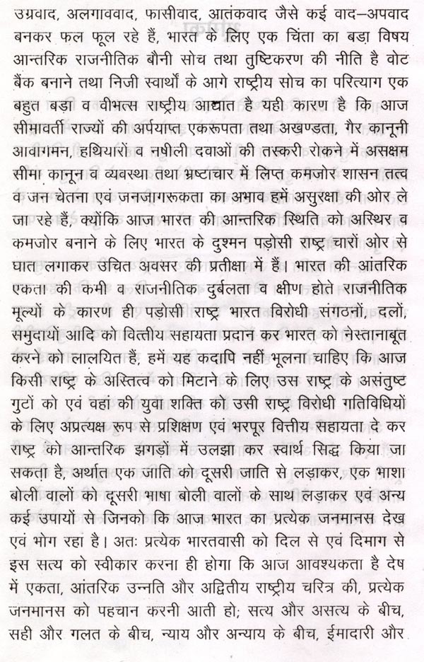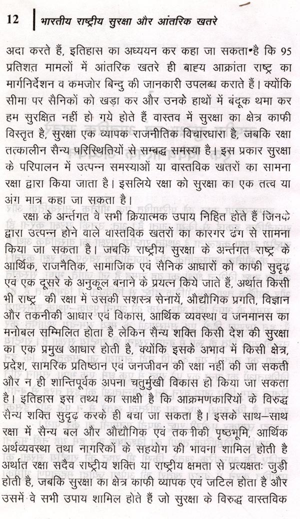The book analyses the serious and important points affecting national security. It is an important text book for scholars who do deep study and contemplation on the subject of national security, as well as for examinations sponsored by the Union Public Service Commission and State Public Service Commission, and for general studies and examinations like NET, JRF, SLATE/SAT conducted by the University Commission.