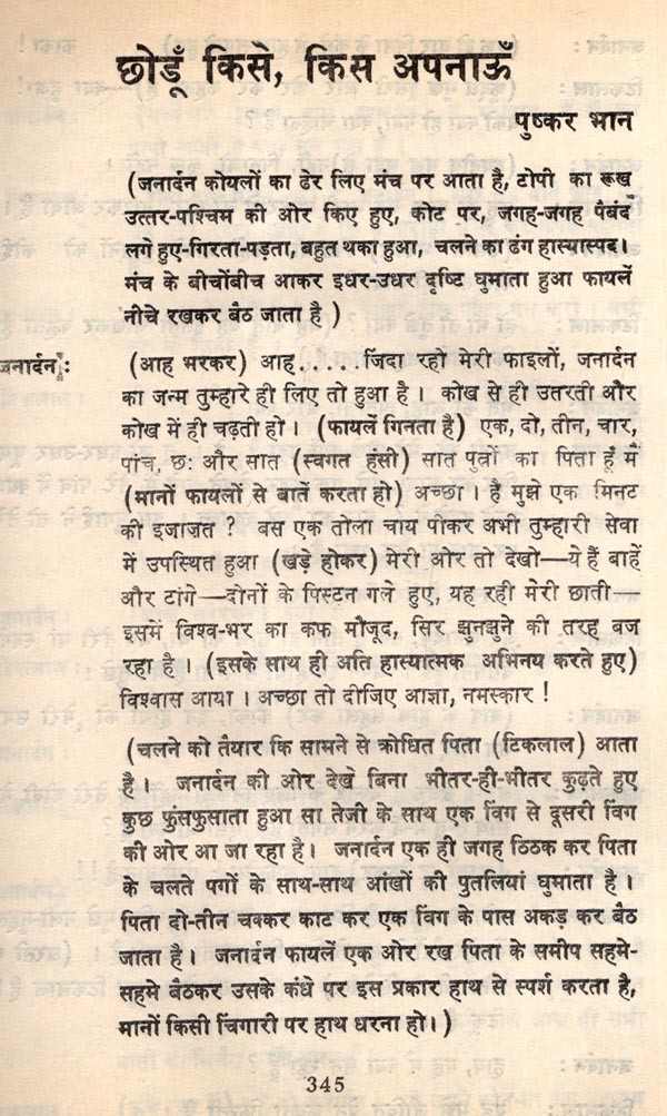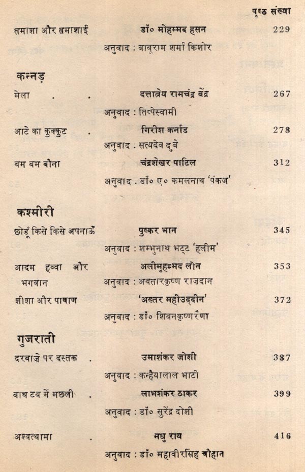 बीसवीं शताब्दी के आरंभ से लेकर आज तक के भारतीय साहित्य की चौदह भाषाओं के तीन-तीन एकांकियों का चयन कर इस पुस्तक में संकलित किया गया है। इनमें से पहला एकांकी स्वतंत्रतापूर्व के साहित्य में से लिया गया है और शेष दो एकांकी स्वातंत्र्योत्तर साहित्य से चुने गए हैं। हिंदी भाषा के चार एकांकी इसमें दिए जा रहे हैं और समय पर प्राप्त न होने के कारण तमिल के दो एकांकी ही हम प्रकाशित कर सके हैं।