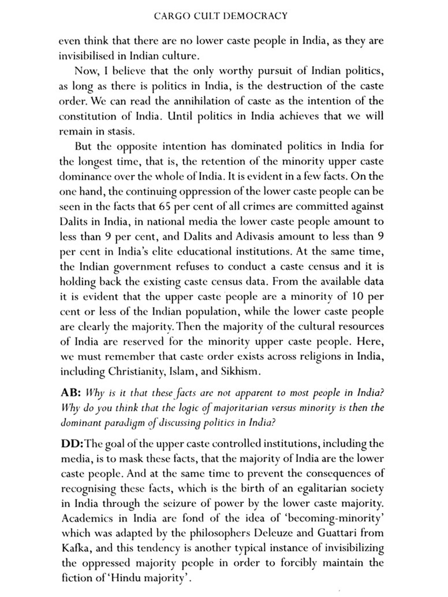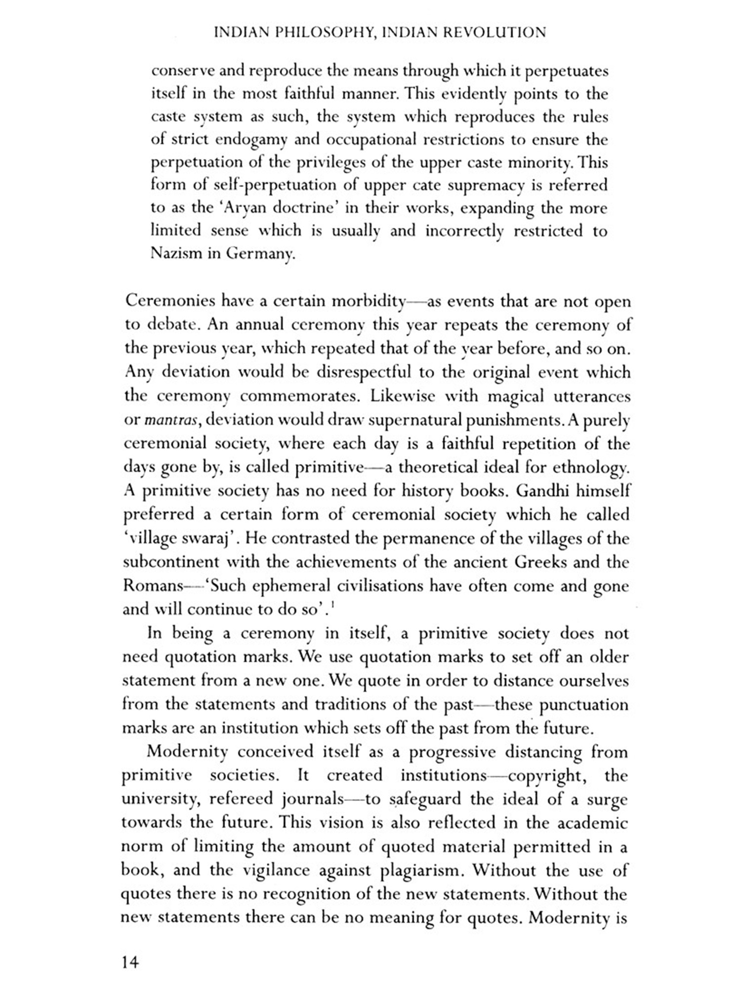 What does revolution mean where the constitutional promise of equality is betrayed daily by the millennia-old inequality of caste? What does politics mean where religion serves as the justification for descent-based enslavement and indignity? Revolution has only one sense in India, the annihilation of caste; and 'citizen' has only one sense, the people of the state shedding caste and racism.