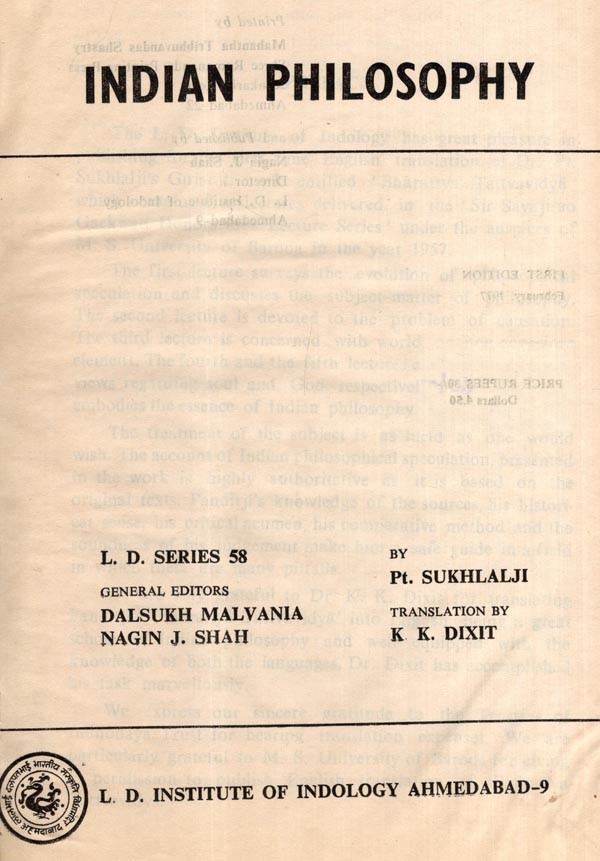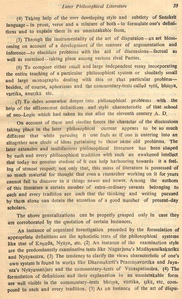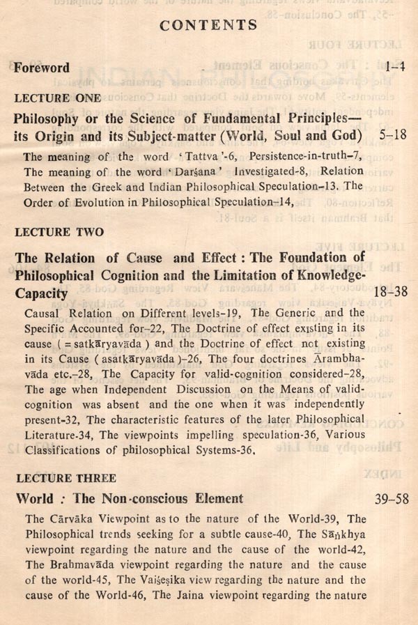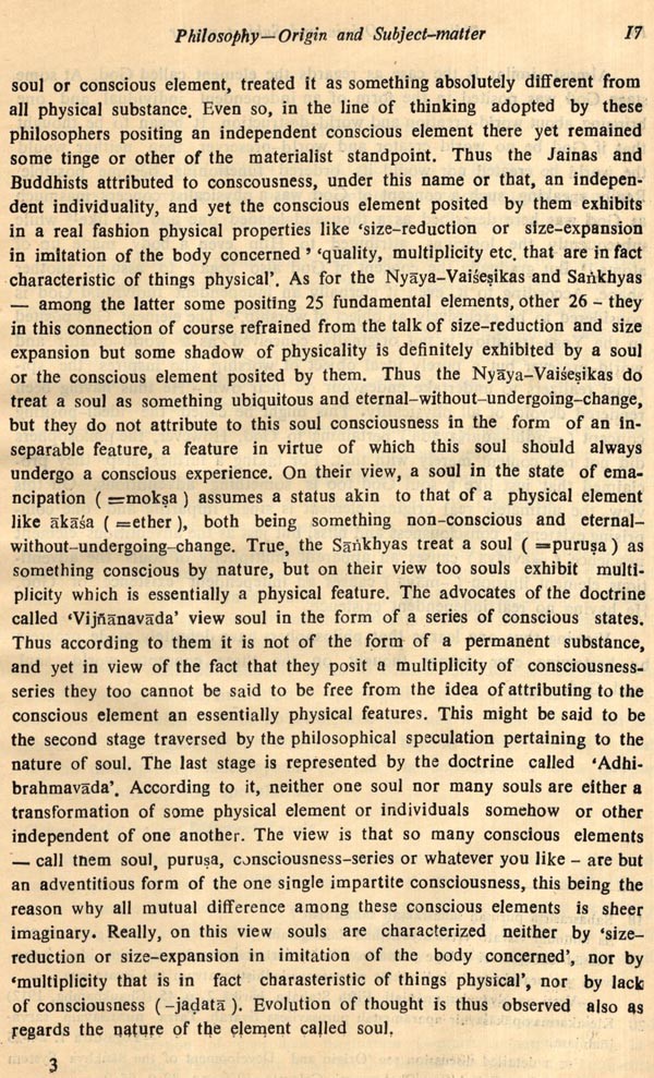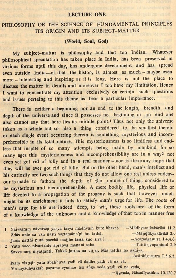When one is out to write something then the question arises whether the writing should follow a popular style or a scholarly style. The ever-growing expansion of education, the ever-growing number of readers, and the ever-growing propagation of literature-all these factors incline one to write following a popular style. However, I have adopted the opposite course. For this one reason of course was that the series under whose auspices 1 was to deliver lectures does not belong to an ordinary category. But another reason that was also before me was that if one is to form a correct idea as to the different question pertaining to philosophy and as to the particular traditions arisen in connection with them, then the aim cannot be achieved in case one remains confined to the very upper-surface of consideration. Thus if one makes no attempt to penetrate into their depth the philosophical topics would ultimately look like something lacking sophistication and sheer humdrum. On the other hand, if one on one's own makes an attempt to penetrate down into those topics as deep as possible the scope for acquiring a genuine knowledge as regards them will become wider day by day. And when such topics keep assuming depth a language and a terminology appropriate to them gradually become ever more well established and are also established anew. Such an accumulated material in due course proves to be of much value while undertaking a popular exposition of the subject concerned.