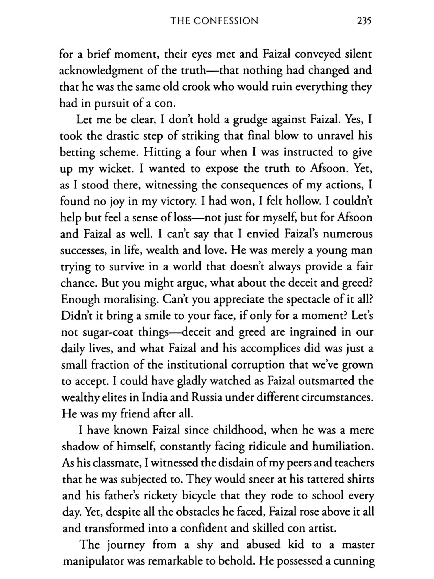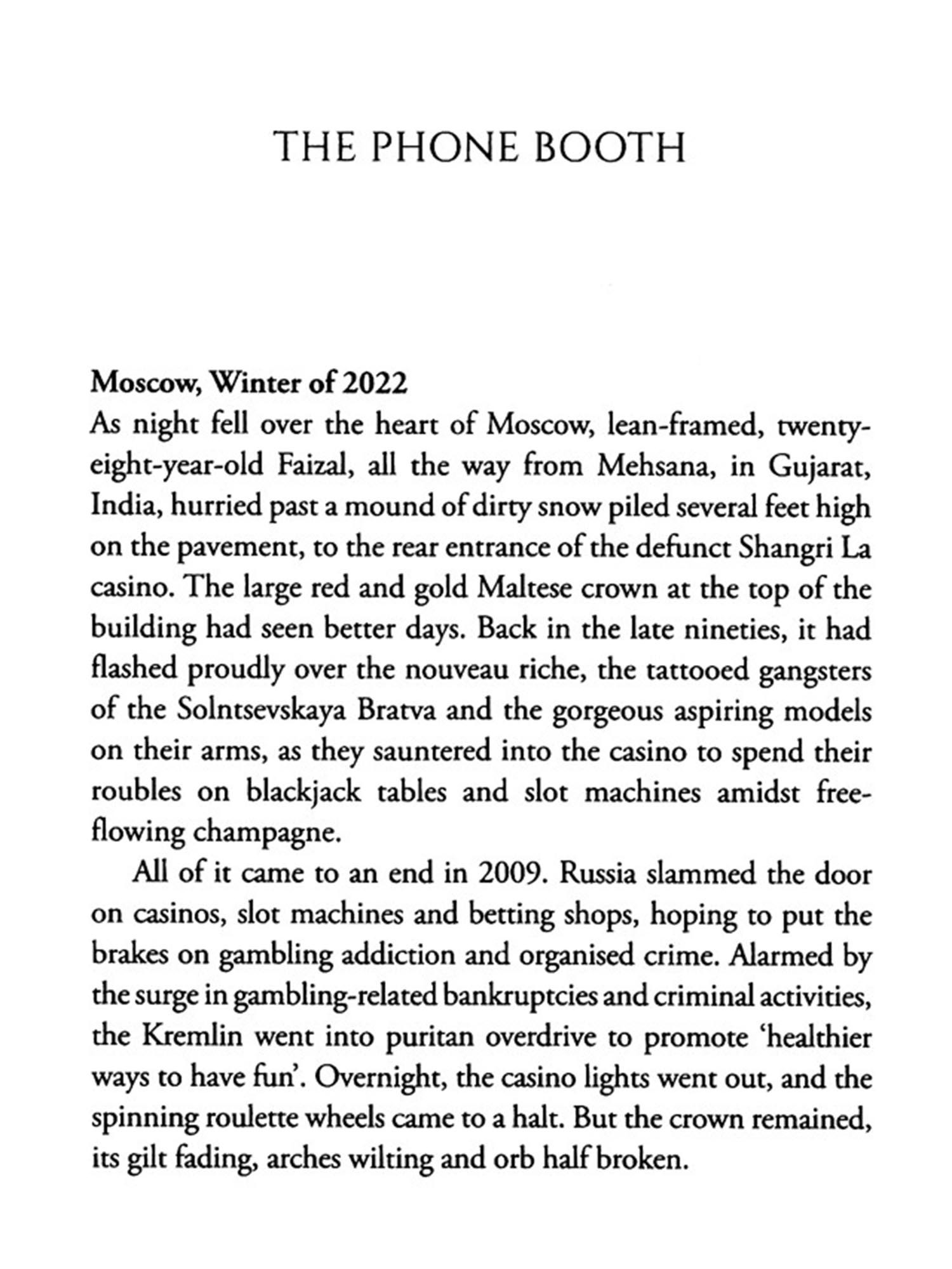 Cheerfully unscrupulous and entirely self-assured, Faizal prepares to set up the scam of his life. Hawala money, clandestine meetings, discreet text channels, rookie players, camera crews and live streams beaming across the world-this is a con job that spans the globe, from Moscow to Mehsana and back.
