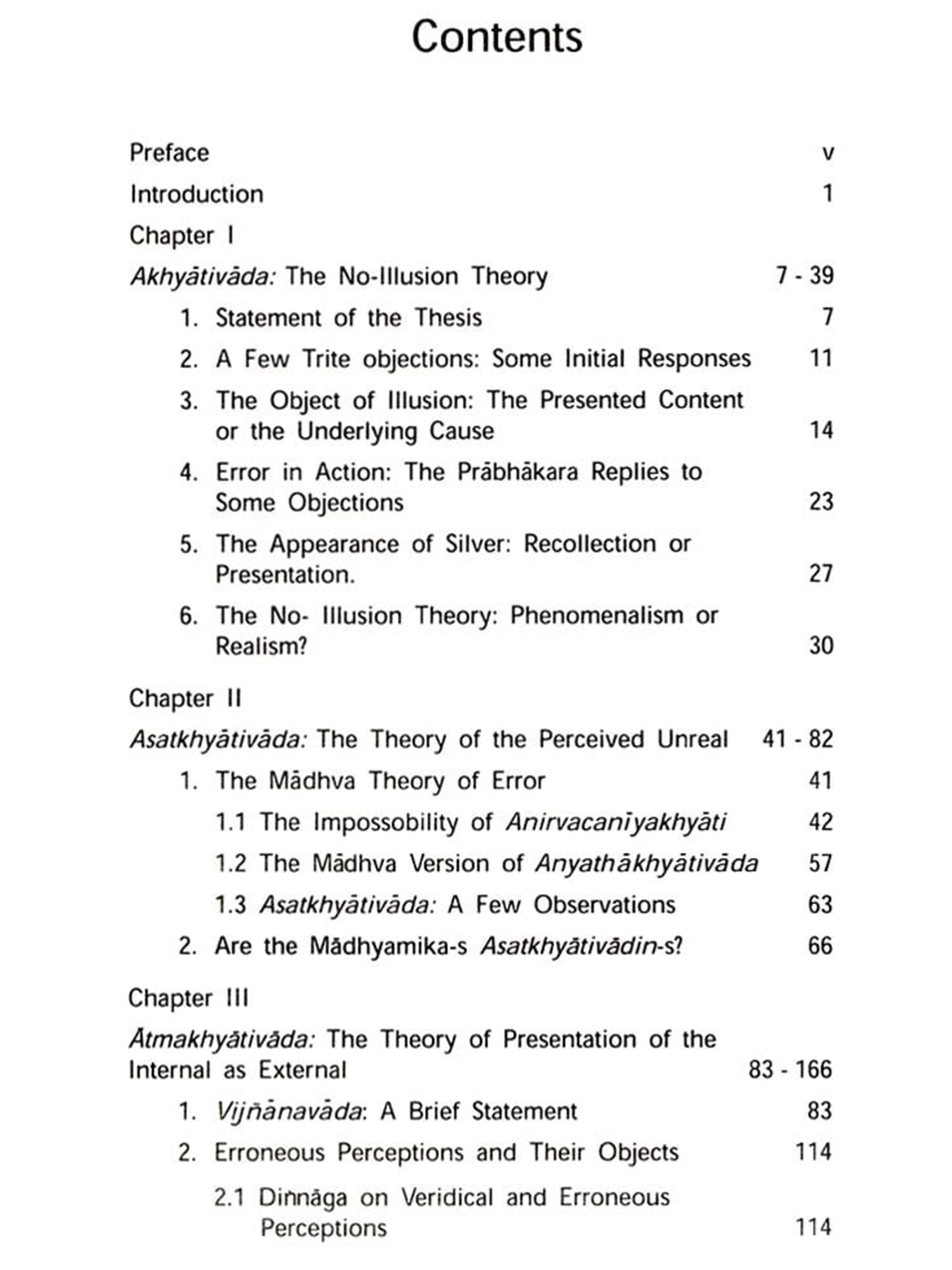The present book was originally planned as a small mono-graph in which I intended to give more or less detailed expositions of the major theories of illusion prevalent in classical India.
