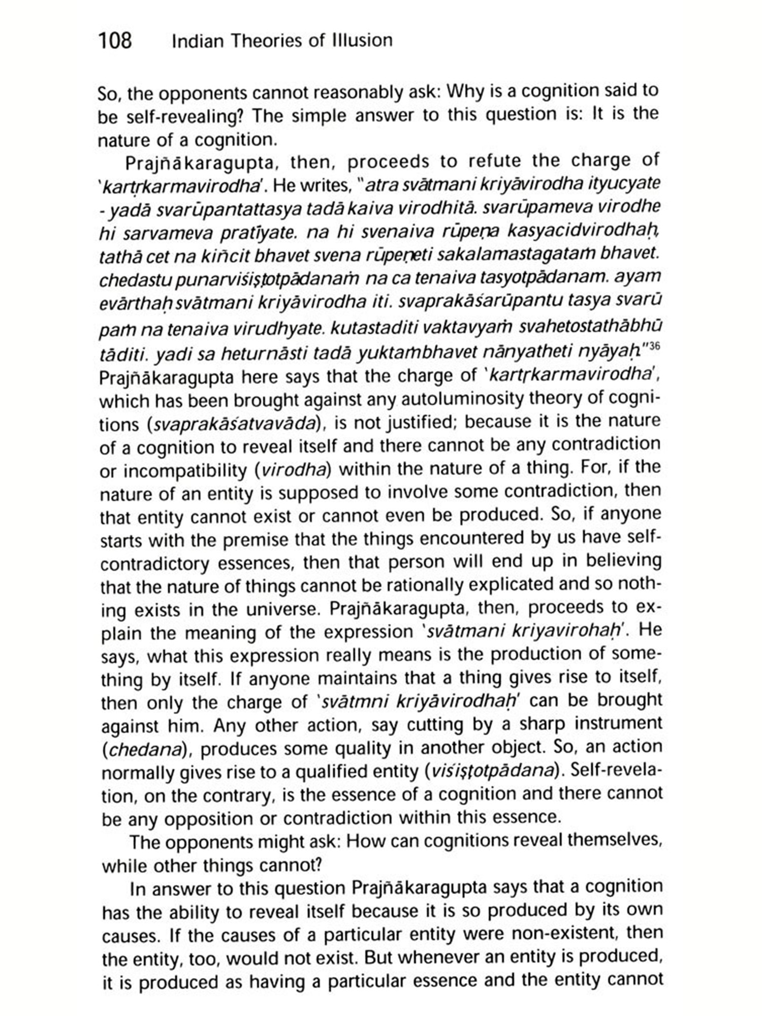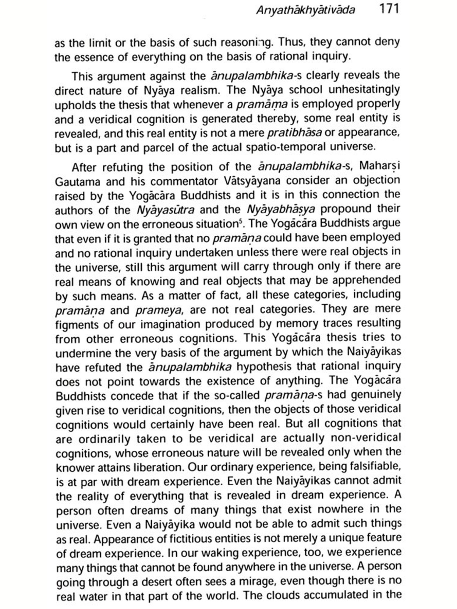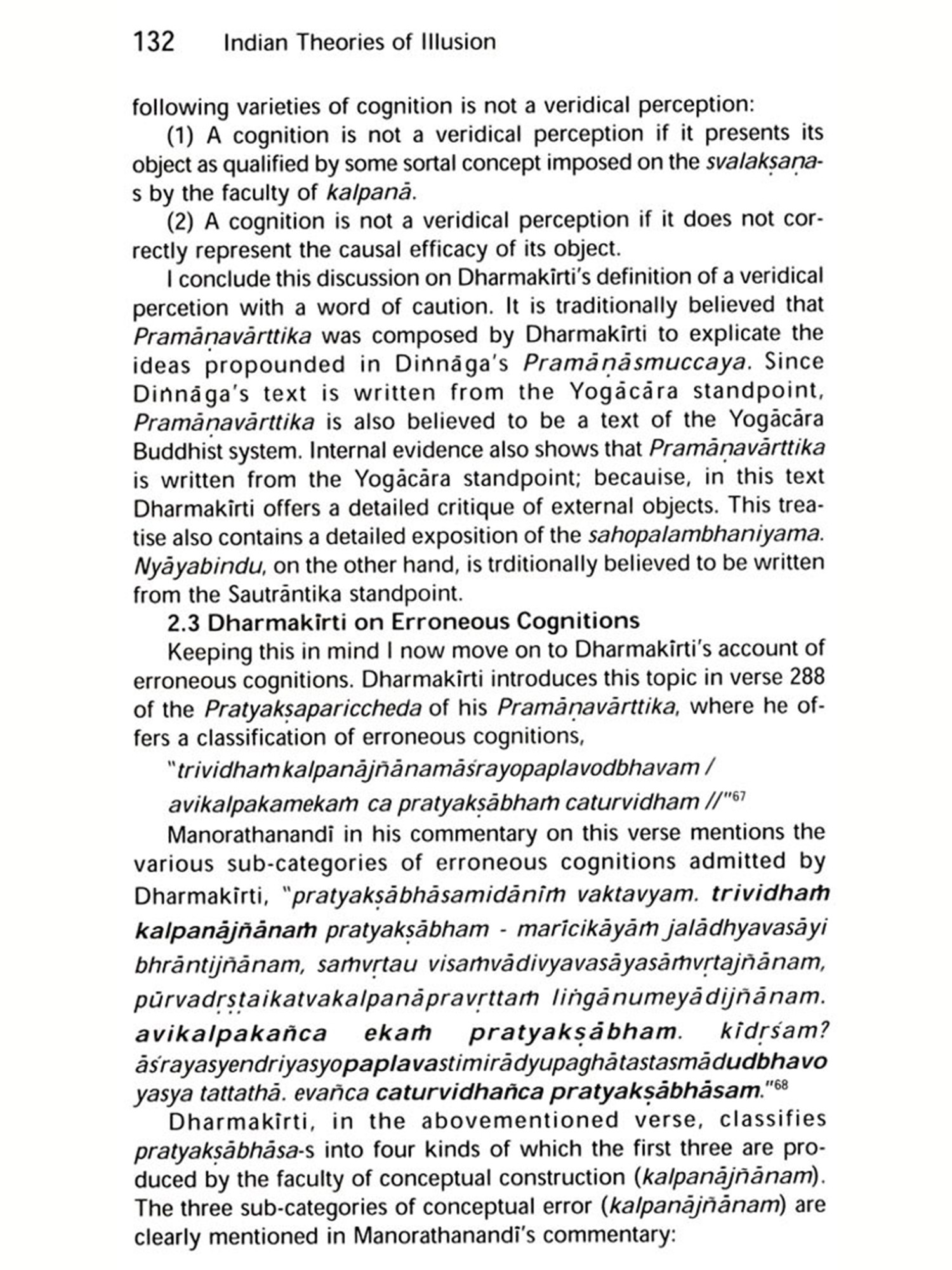 But soon after I started writing this book, I realized that authentic expositions of these ancient theories could not be given within the span of a small monograph. The main objective of this project was to present these theories entirely on the basis of original Sanskrit texts. Whenever I ascribed any view to a particular phi-losopher or to a particular system, I quoted the text on the basis of which such ascription was done. The interpretation and translation of the texts are, of course, mine, if not otherwise indicated. In this book I could discuss only five major theories of illusion.