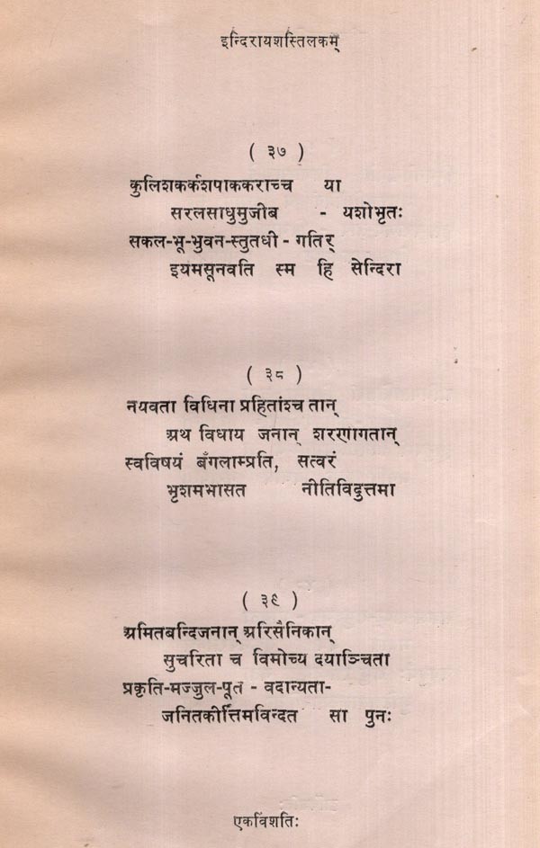 इन्दिरायप्रशस्तिलकम्: Indira Prashastilakam (An Old and Rare Book)
