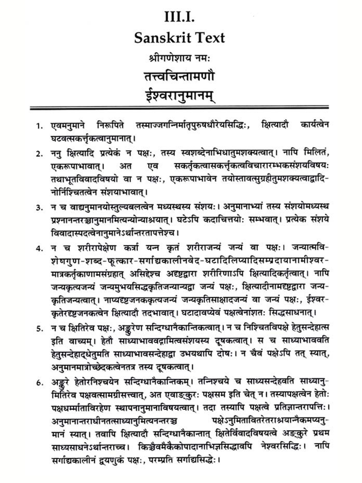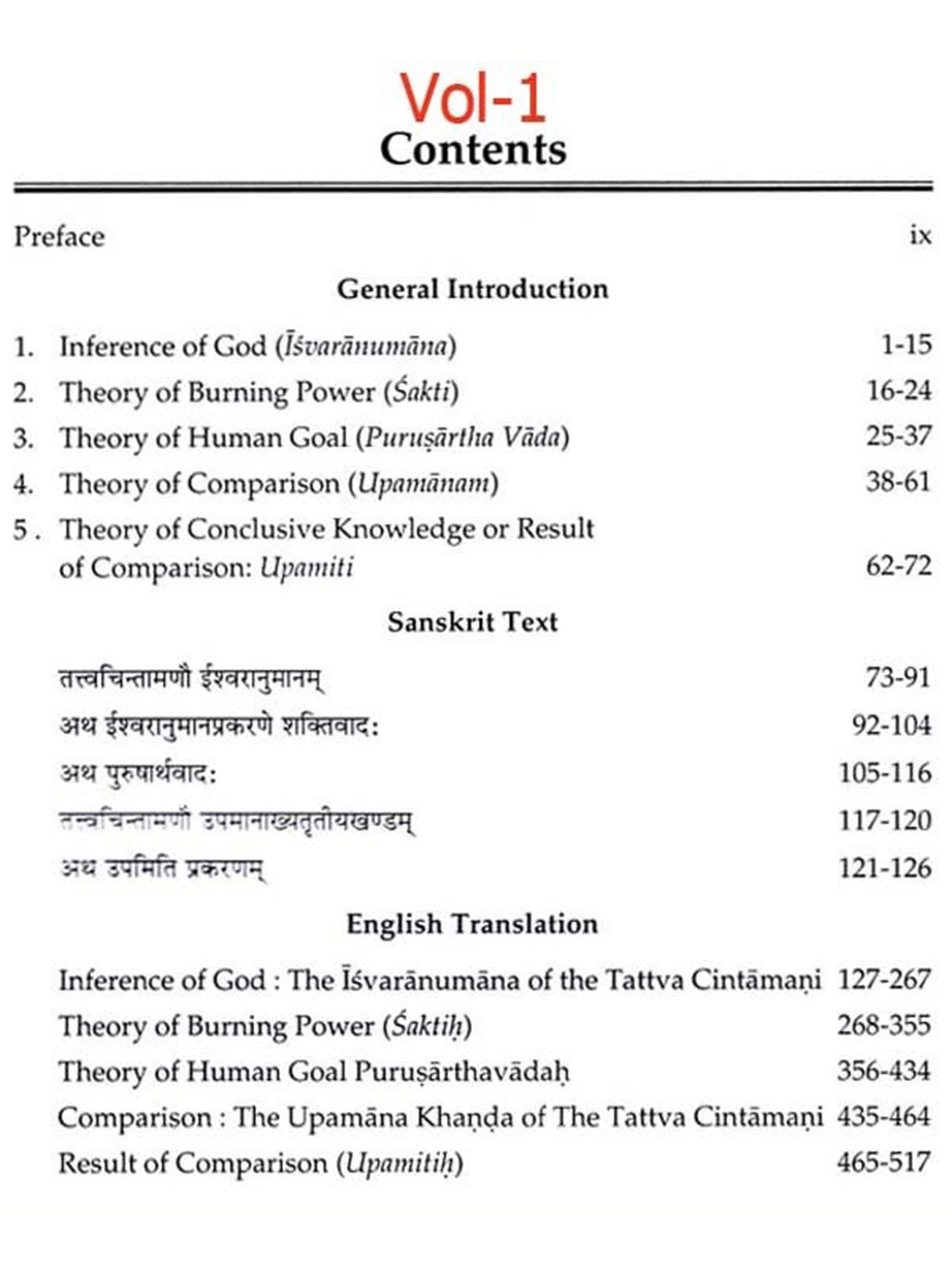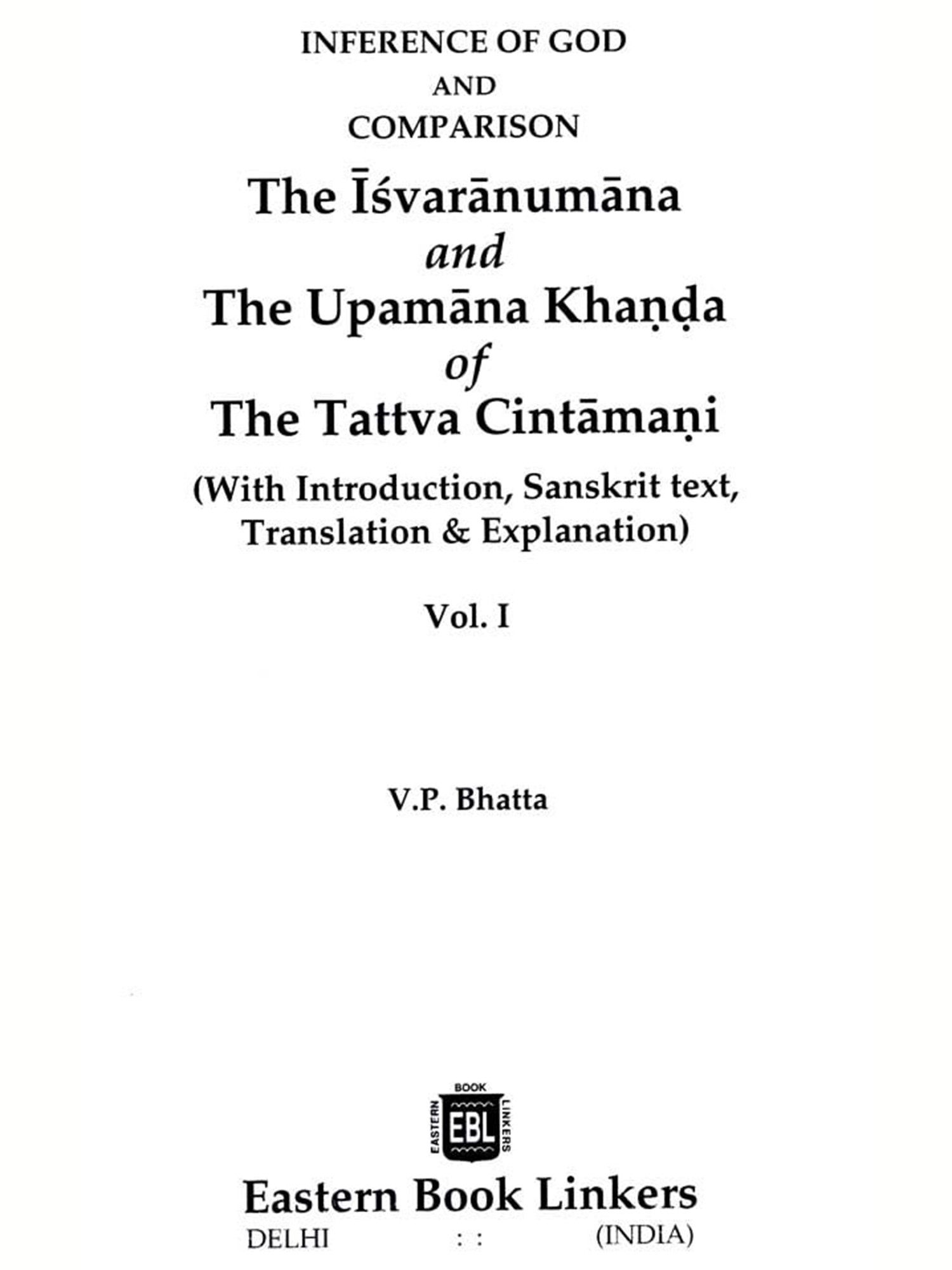 English translations of the books 'Inference of god' (isvaranumana) and Comparison' (upamana) of the Tattva cintamani of Gangesa fulfil the long felt need for a complete translation of the Tattva cintamani with introduction and the Sanskrit text as 'Perception' (Pratyaksa)', 'Inference' (Anumana) and 'Word' (Sabda) of the Tattva cintamani have already been rendered into English with introductions and Sanskrti texts by this author.