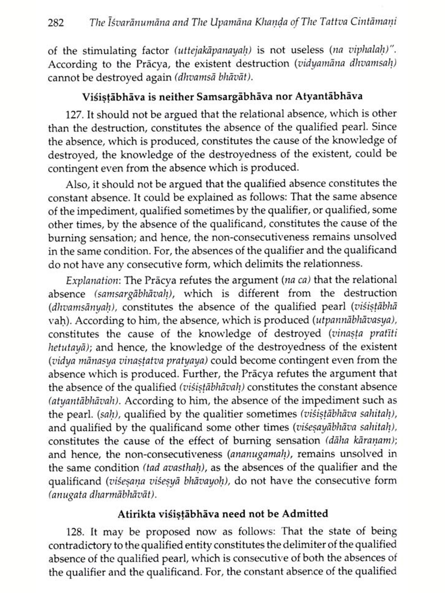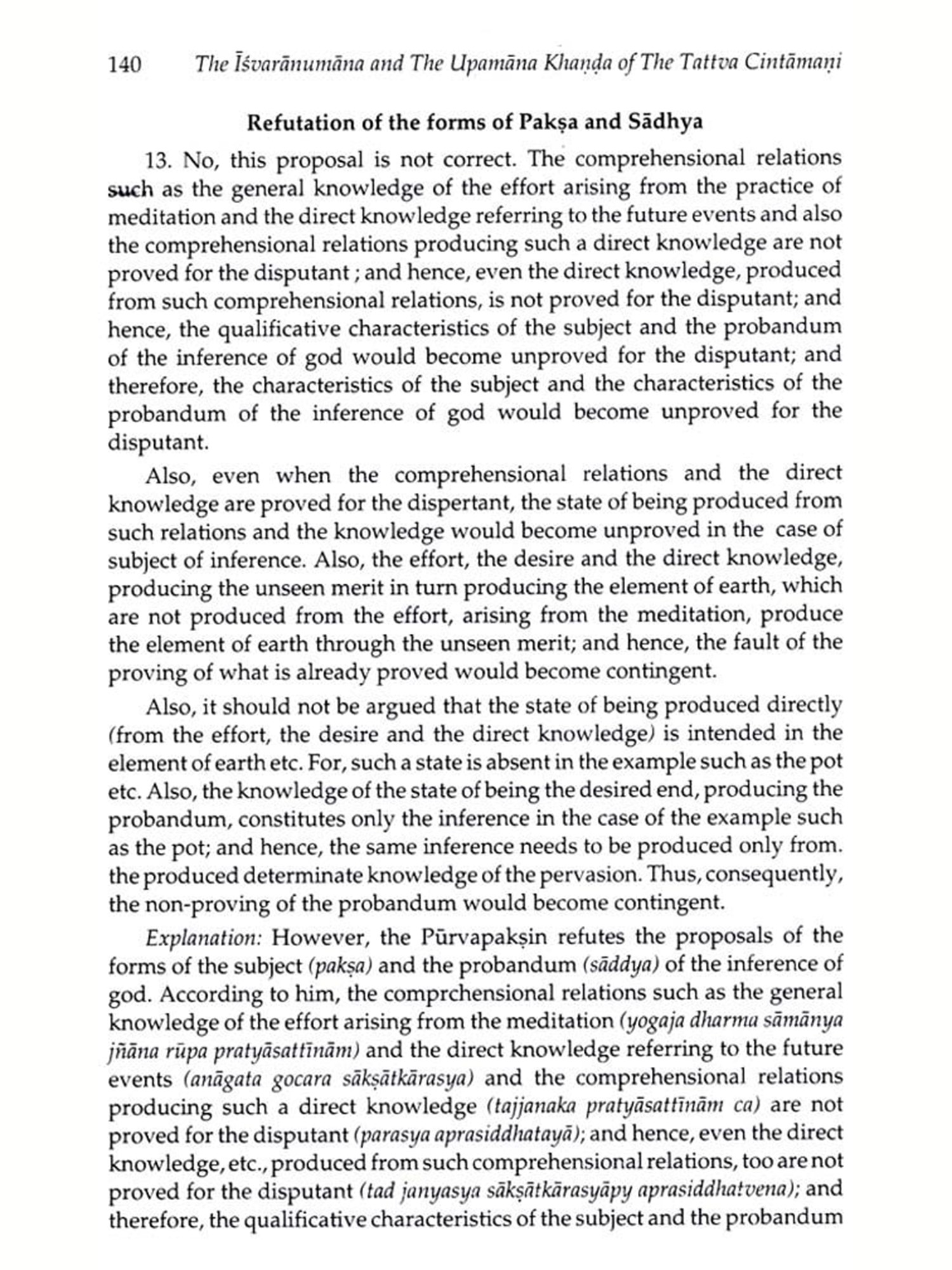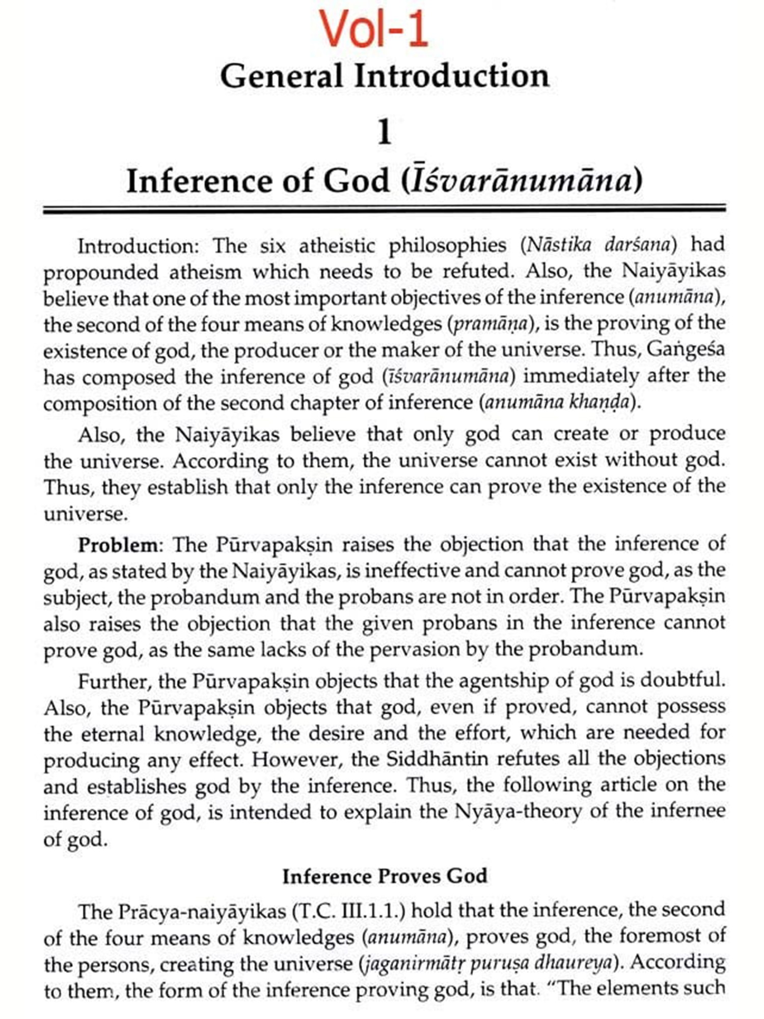 English translations of the books 'Inference of god' (isvaranumana) and Comparison' (upamana) of the Tattva cintamani of Gangesa fulfil the long felt need for a complete translation of the Tattva cintamani with introduction and the Sanskrit text as 'Perception' (Pratyaksa)', 'Inference' (Anumana) and 'Word' (Sabda) of the Tattva cintamani have already been rendered into English with introductions and Sanskrti texts by this author.