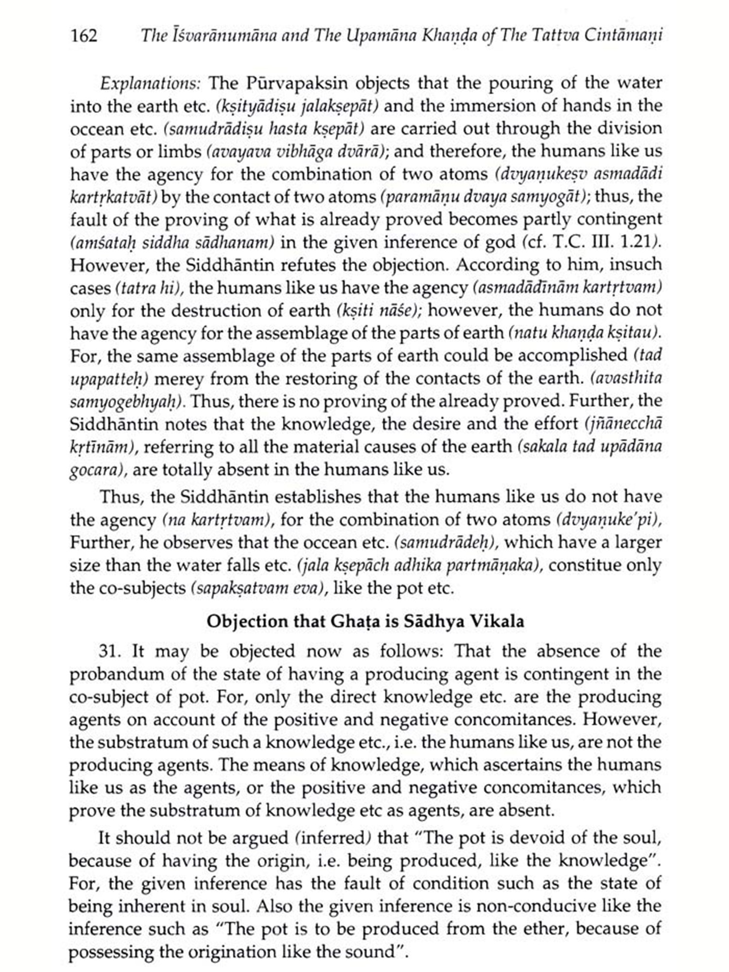 The Significance of 'Inference of god' (isvaranumana) and 'Comparison' (upamana) of the Tattva cintamani cannot be stressed adequately in the context of philosophy and logic. They have established god (isvara) as the agent (producer) (karta) of the creation of the universe (jagat) and comparison as the third means of valid knowledge (pramana) respectively. They have also established that inference is the only means, which can prove god as the producing agent, and also that comparison is the third means of valid knowledge, which proves the expressed meaningness of the expressed meaning (sadhya sadhana) on account of the likeness (sadharmyat).