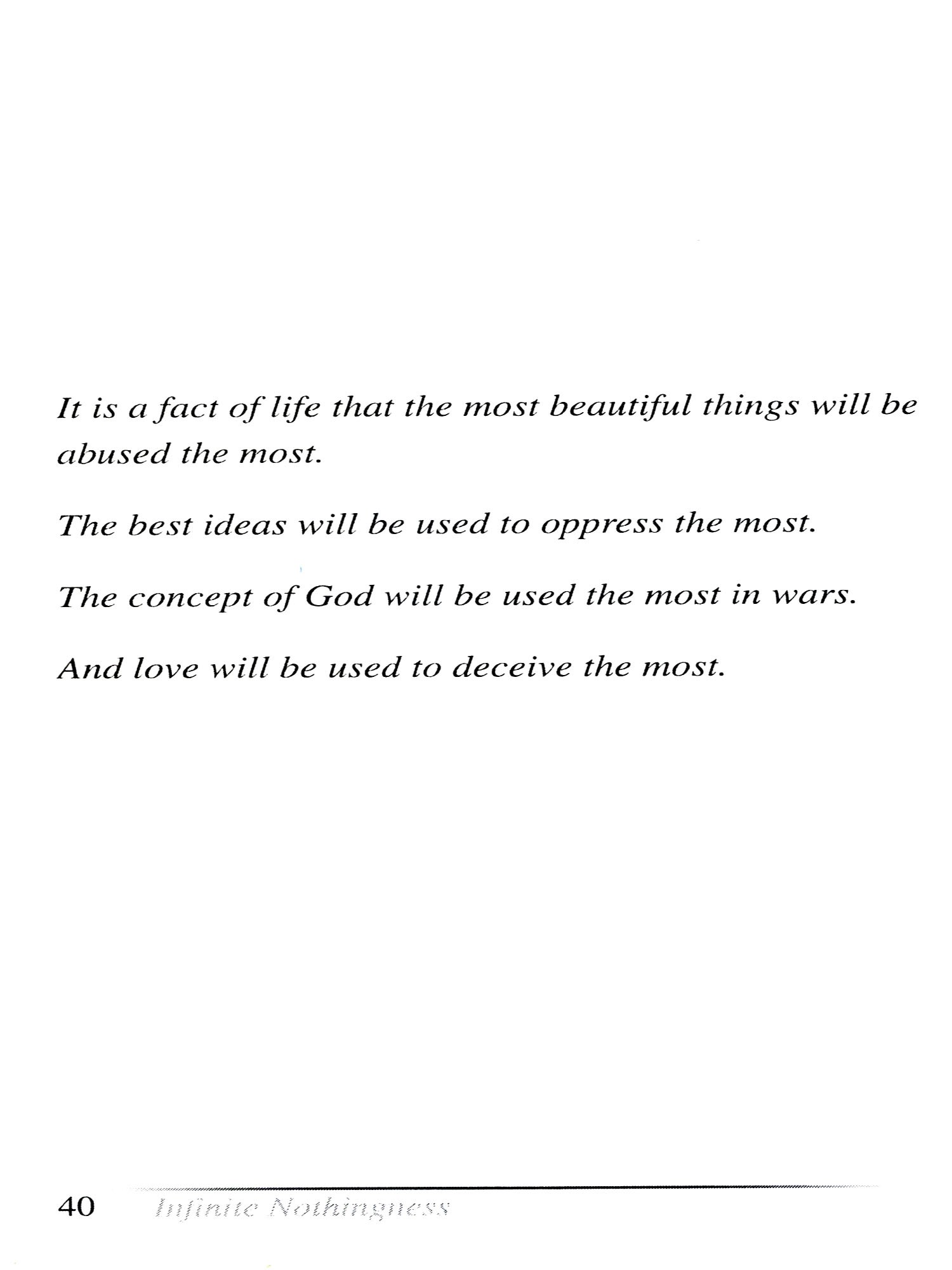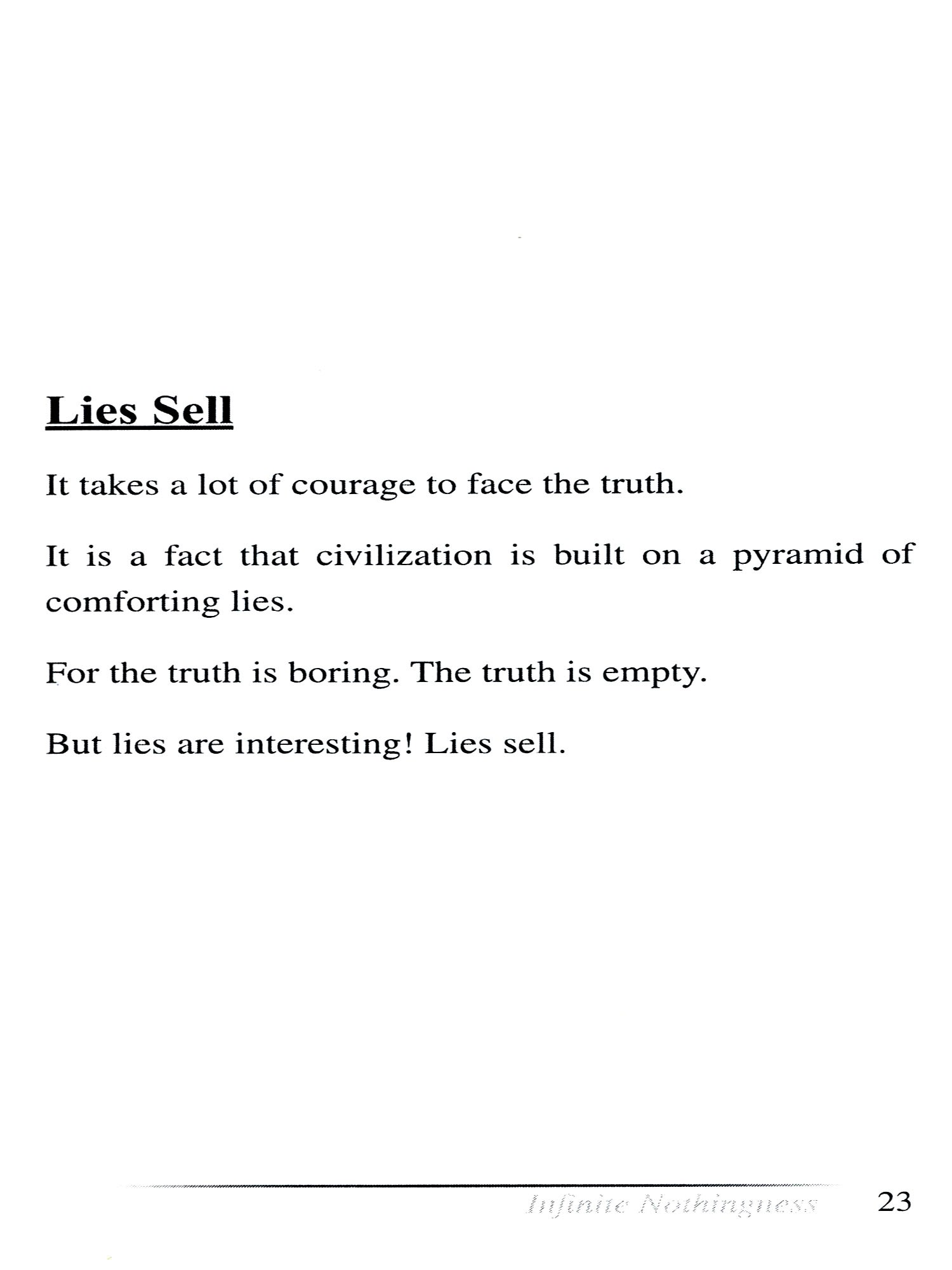 And remember: the answers lie not outside but within you. May this collection disturb and enlighten, provoke and inspire. For those who dare to confront the infinite nothingness within themselves, there awaits a universe of discovery.
