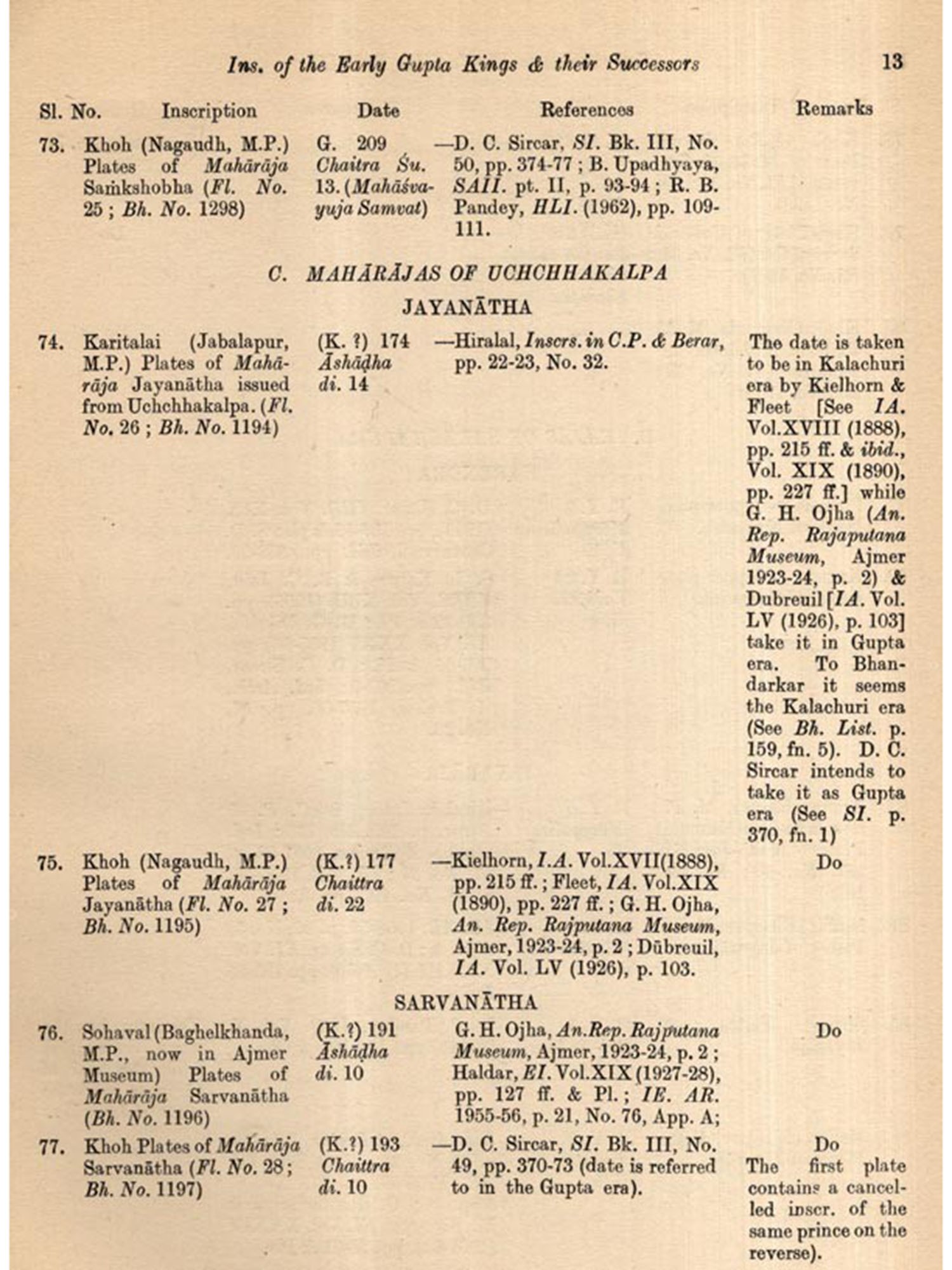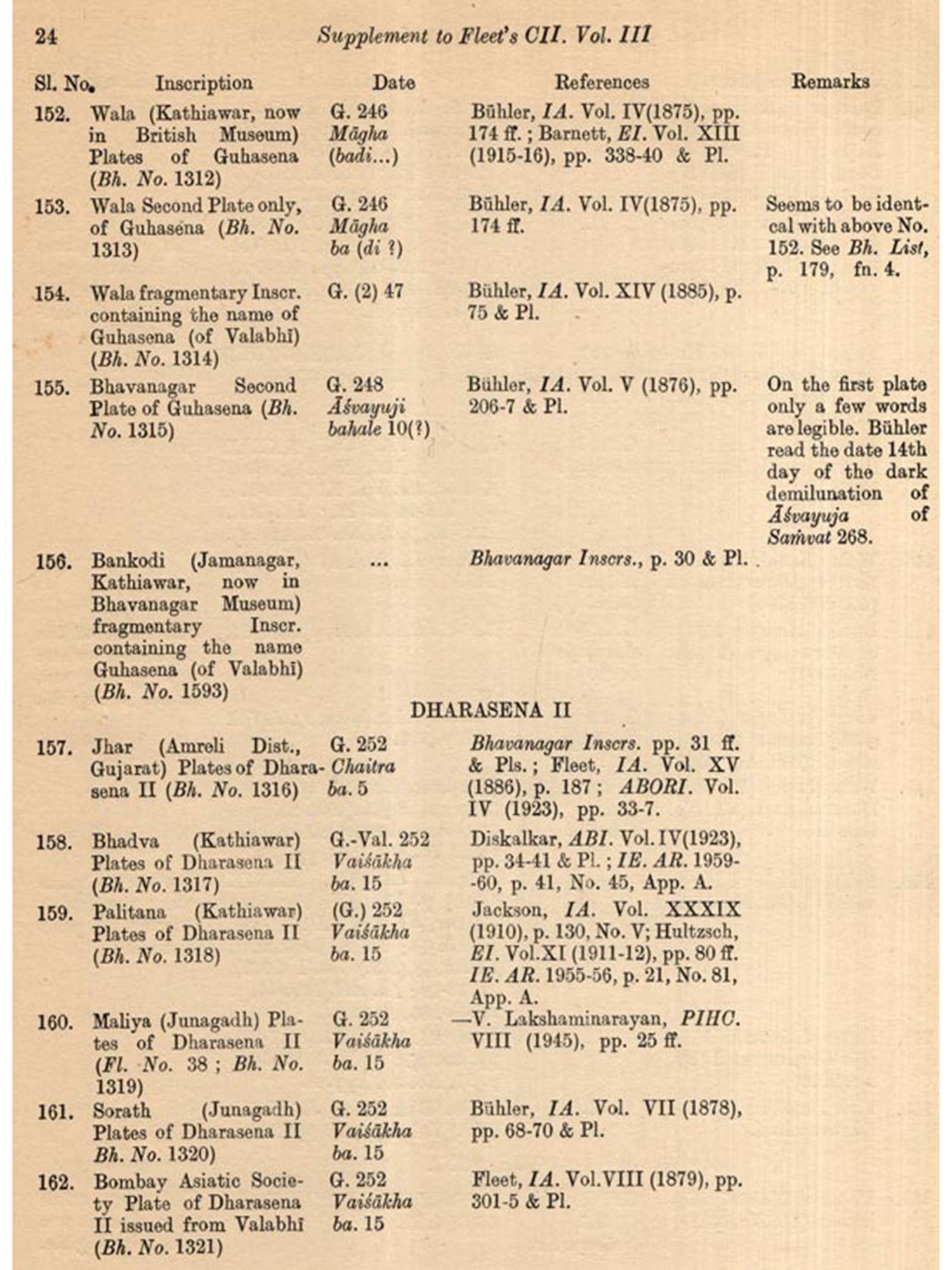 Dynastic list of Copper Plate Inscriptions (Noticed In Annual Reports On Indian Epigraphy From 1969-70 to1996-97)