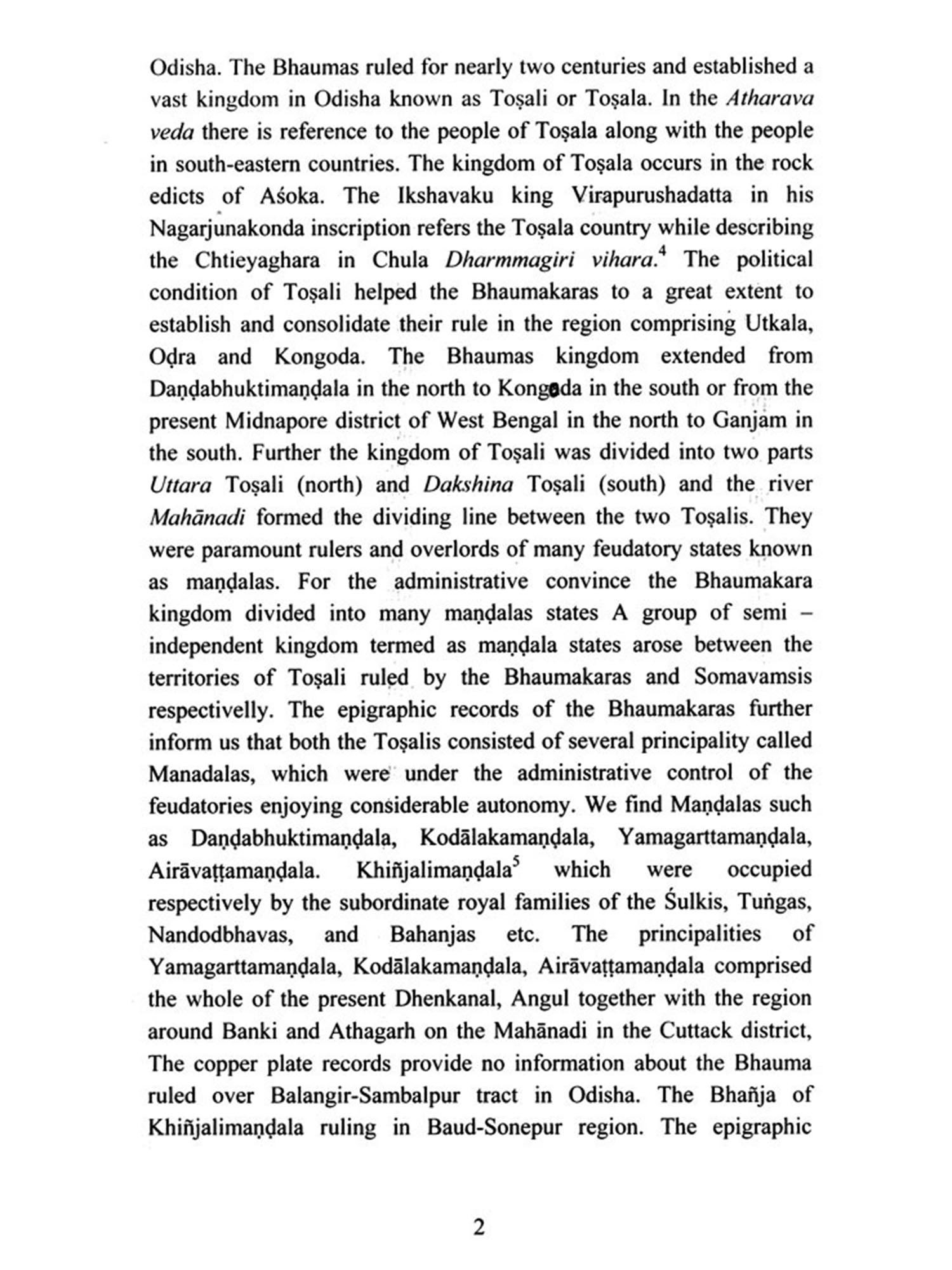 The Bhanjas of Khiñjalimandala are known mainly from the copper plate's records. From the available copper plate charter we come to know that the Khinjalimandala comprising the region the whole of Baud, Sonepur, Phulabani and part of Nayagarh district. They ruled as a semi independent status under the Bhaumakaras. The history of Odisha in the 8th century A.D. entered into a new phase under the able leadership of Bhaumas. They emerged as a strong political force from Viraja or modern Jajpur. The ruler established a vast kingdom known as Toşala or Toşali. The epigraphic records states that their kingdom was extended from Danņdabhuktimandala (Midnapore in West Bengal) in the north to Ganjam district in the south and from the sea coast in the east to Baud Kandhamal. The whole of central belt under their sway. During the rule of the mighty Bhaumakaras there flourished good numbers of Mandala states were Kodālakamandala. Yamagarttamandala, Airāvattamandala. Khiñjalimandala etc. which were occupied respectively by the Sulkis, Tungas, Nandodbhavas and Bhañjas.