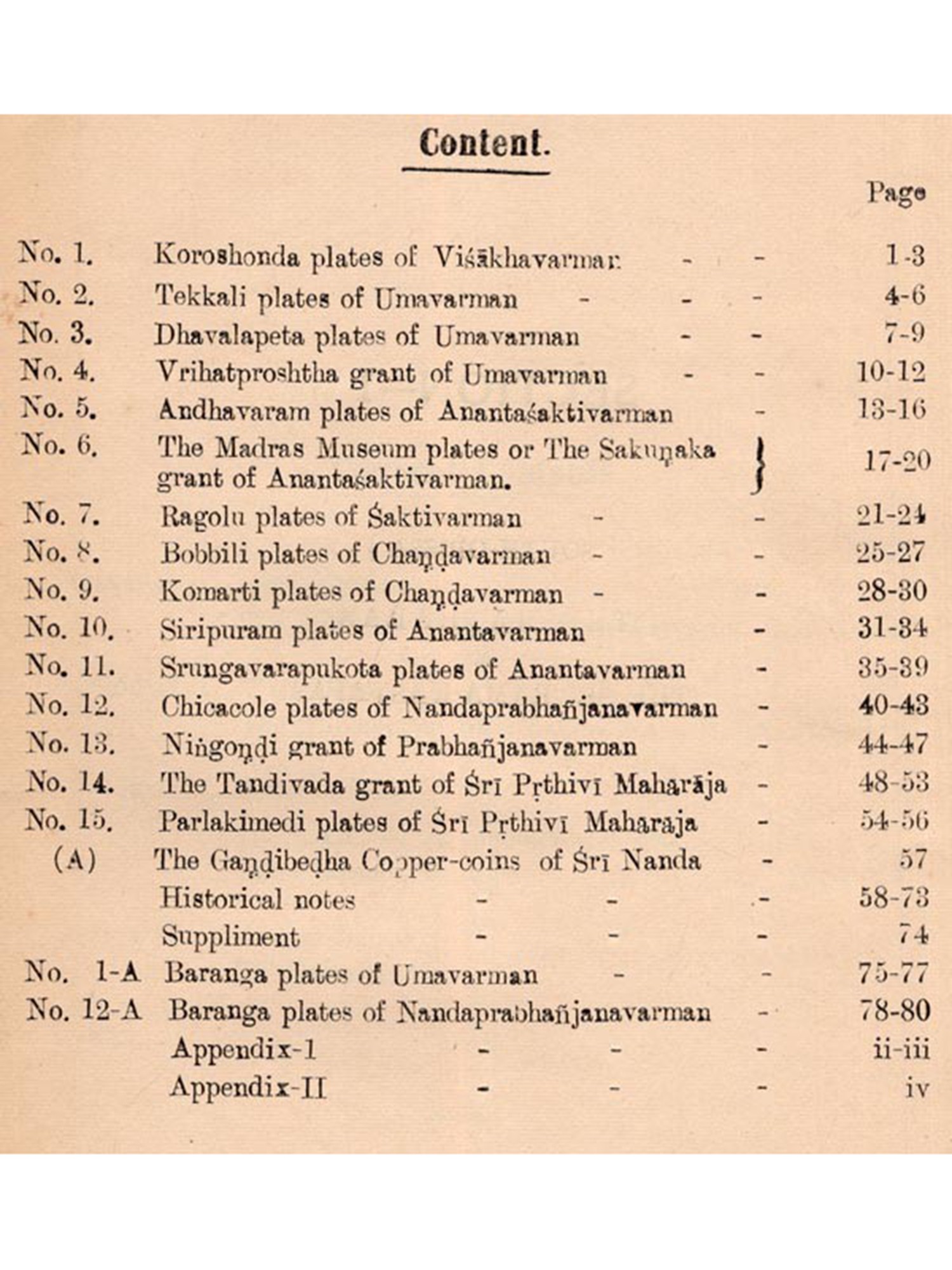 This work is divided into four Sections, namely South-Orissa, West Orissa, North-Orissa and Central-Orissa, dealing with inscriptions of different families on topographical and chronological basis that ranged from about 200 to 700 A. D. The total number of inscriptions embodied herein is 49 of which only a few inscriptions are associated with facsimiles. In order to facilitate for easy reference a synopsis is given at the beginning of each inscription and a historical note at the end of cach section. I hope the system adopted in this work will enable the readers to study the history of Orissa in a systematic way.