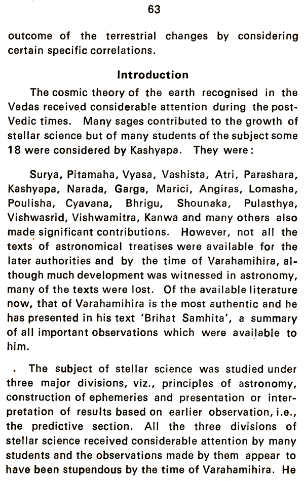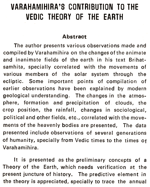 The section on 'Varahamihira's contribution to the Vedic Theory of the Earth' was presented by the author to the Third International Sanskrit Conference held in Paris in 1977.
