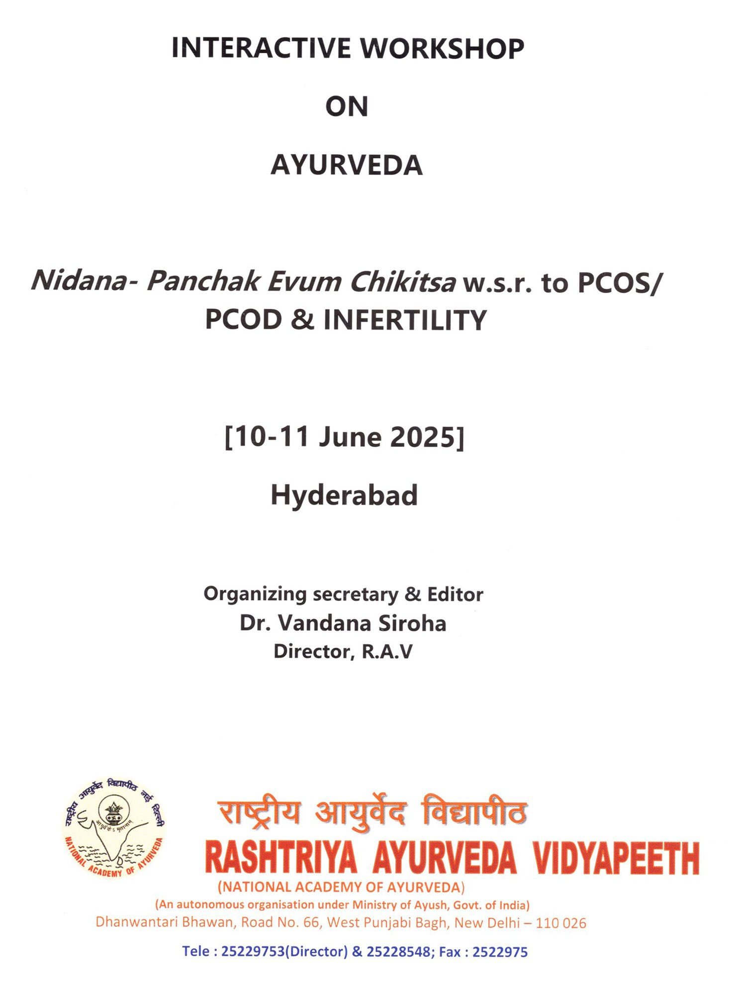 Interactive Workshop on PCOS, PCOD & Infertility: On 10th–11th June 2025 at the National Institute for Micro, Small & Medium Enterprises, Hyderabad (Andhra Pradesh)