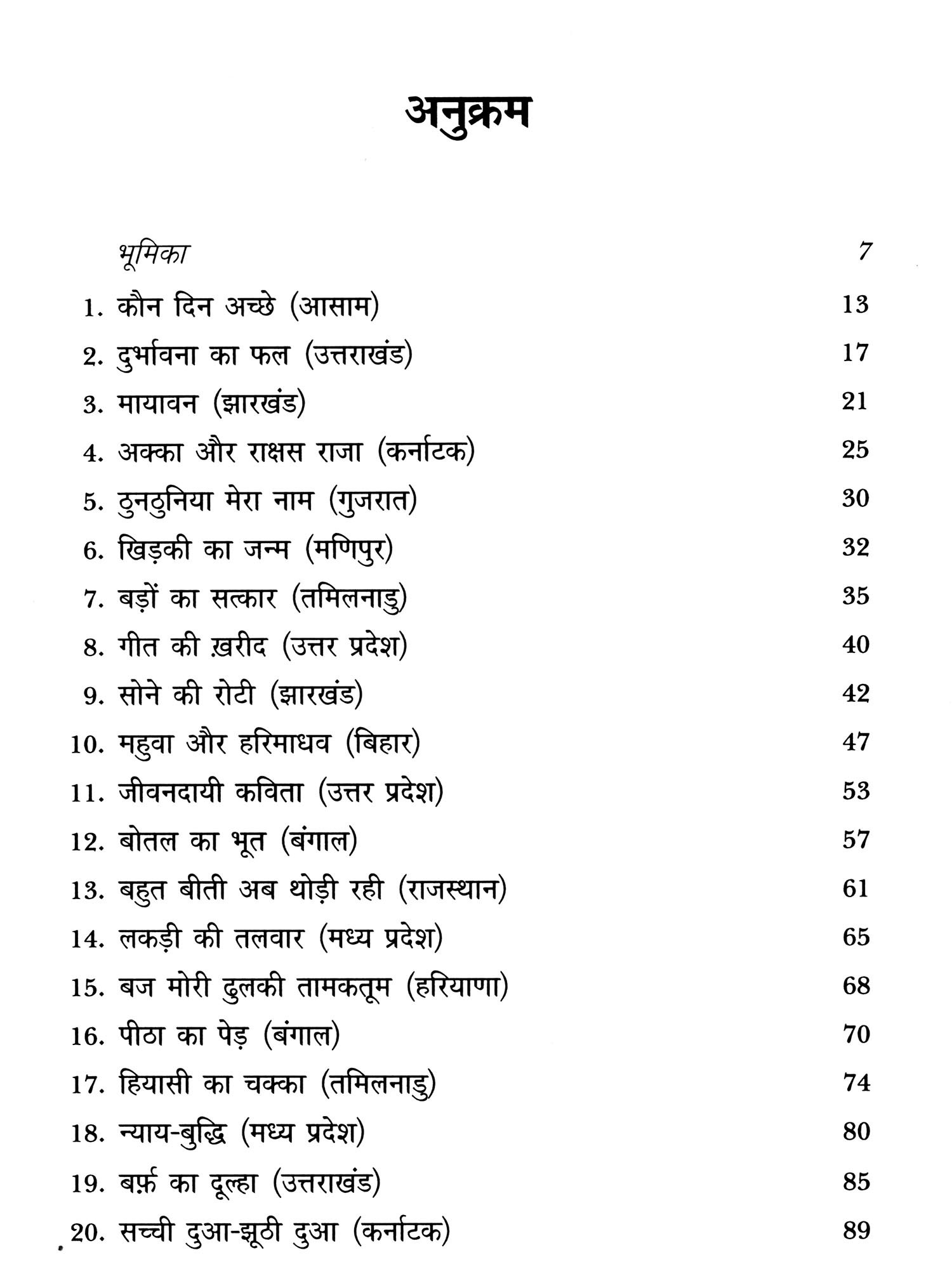 यहाँ प्रस्तुत कहानियाँ उसी परंपरा से आने वाली कहानियों का विकसित रूप है। लोक कहानियाँ एक पूरी संस्कृति का वहन करती हैं। इनमें जनमानस की आस्थाएँ, विश्वास और आदर्श परिलक्षित होते हैं। समूचे समाज की भावना, आकांक्षा और मंगल कामना इन कथाओं में छिपी होती है। लोक कहानियों के जरिए आज भी वाचिक परंपरा, इतिहास और संस्कृति का संरक्षण हो रहा है।